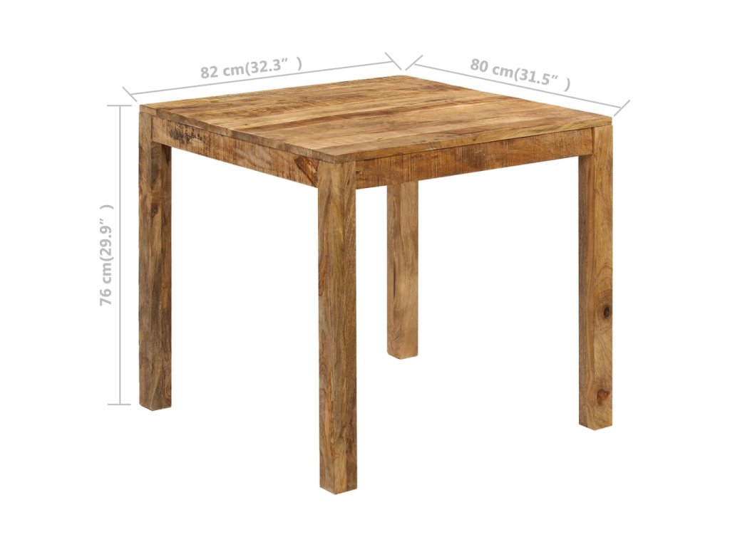 Tento jedálenský stolík je vyrobený z masívneho mangovníkového dreva, ktoré je pevné, odolné a krásne. Remeselné prevedenie mu dodáva úžasný retro štýl. Každý krok procesu je robený s tou najväčšou starostlivosťou, či už sa jedná o leštenie, lakovanie alebo natieranie. Vďaka nádhernej štruktúre dreva je každý kus tohto nábytku jedinečný a mierne odlišný od ostatných kusov.