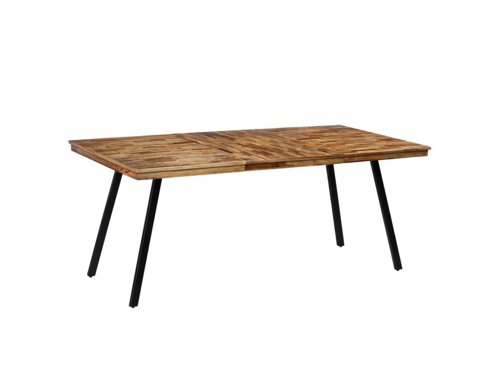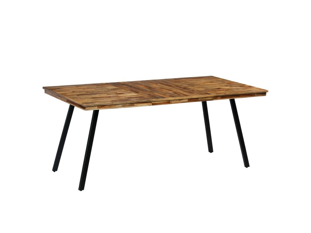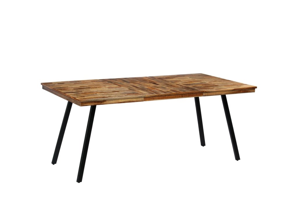Doska stola je vyrobená z recyklovaného a rekultivovaného strarého teakového dreva, ktoré je veľmi pevné a odolné, a dodáva výrobku prirodzený vzhľad. Každý krok procesu výroby sa vykonáva s maximálnou starostlivosťou, či už je to leštenie alebo lakovanie. Vďaka krásnej drevenej štruktúre je každý kus nábytku jedinečný a trochu odlišný od ostatných. Oceľové nohy dodávajú stolíku pevnosť a priemyselný štýl. Montáž je jednoduchá.