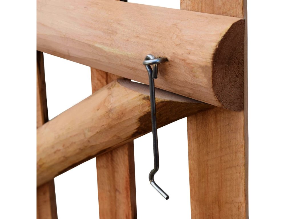 Pevná brána obsahuje vertikálne latky a vodorovné a diagonálne priečky, vďaka ktorým je pevná a trvácna. Záhradná brána je dodávaná s kovovými pántami, skrutkami a háčikom.