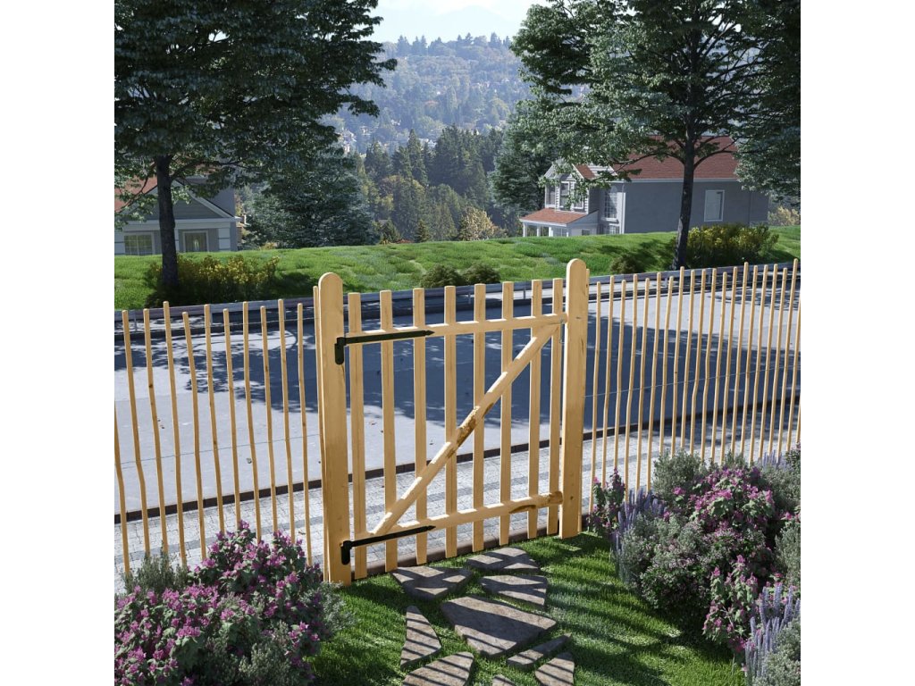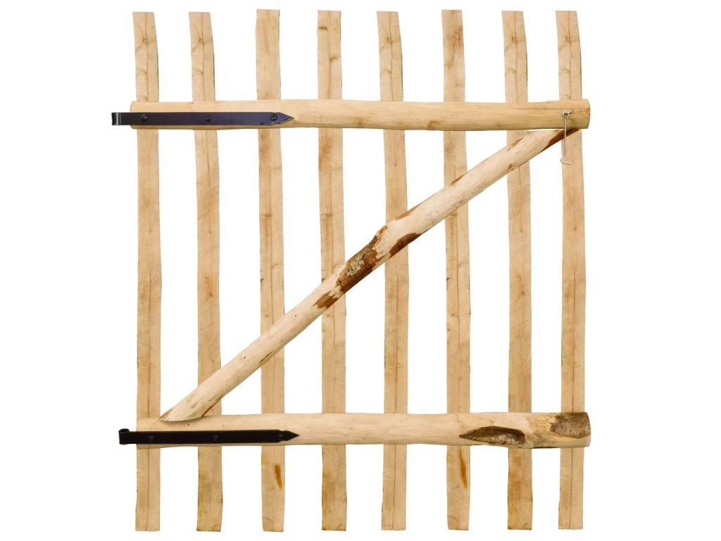 Trvácna plotová brána je vyrobená z odolného lieskového dreva. Prírodné a neošetrené lieskové drevo sa vyznačuje prírodným šarmom a zvýrazní prírodný vzhľad každej záhrady. Lieskové drevo je odolné voči všetkým poveternostným vplyvom.