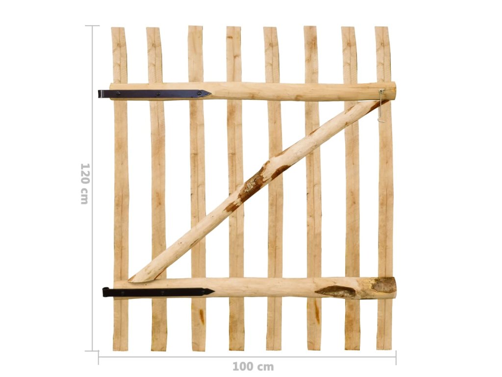 Pevná brána obsahuje vertikálne latky a vodorovné a diagonálne priečky, vďaka ktorým je pevná a trvácna. Záhradná brána je dodávaná s kovovými pántami, skrutkami a háčikom.