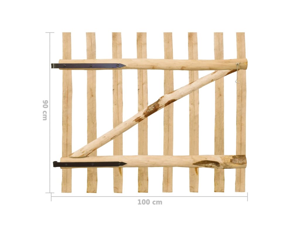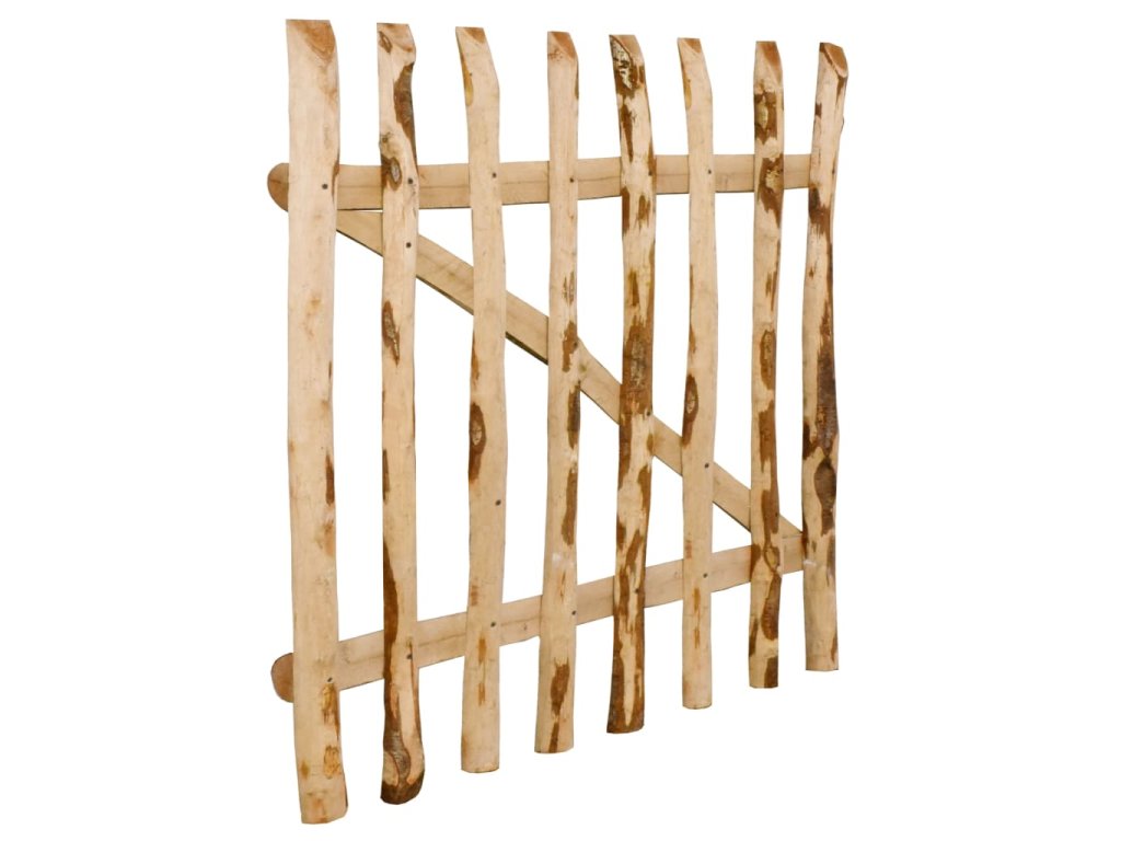 Trvácna plotová brána je vyrobená z odolného lieskového dreva. Prírodné a neošetrené lieskové drevo sa vyznačuje prírodným šarmom a zvýrazní prírodný vzhľad každej záhrady. Lieskové drevo je odolné voči všetkým poveternostným vplyvom.