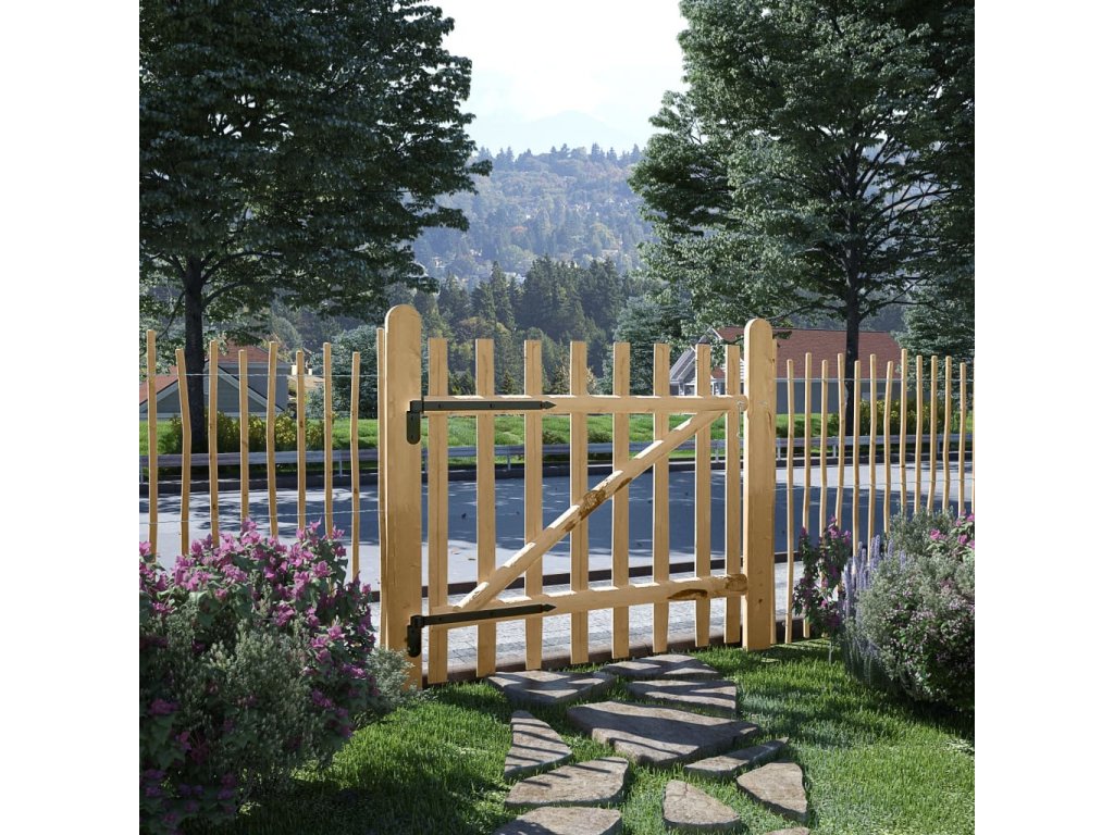 Pevná brána obsahuje vertikálne latky a vodorovné a diagonálne priečky, vďaka ktorým je pevná a trvácna. Záhradná brána je dodávaná s kovovými pántami, skrutkami a háčikom.