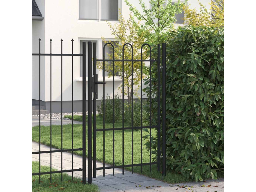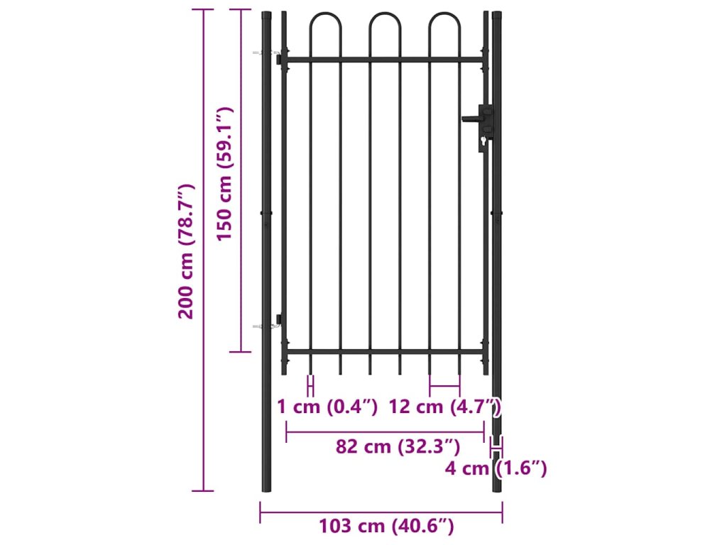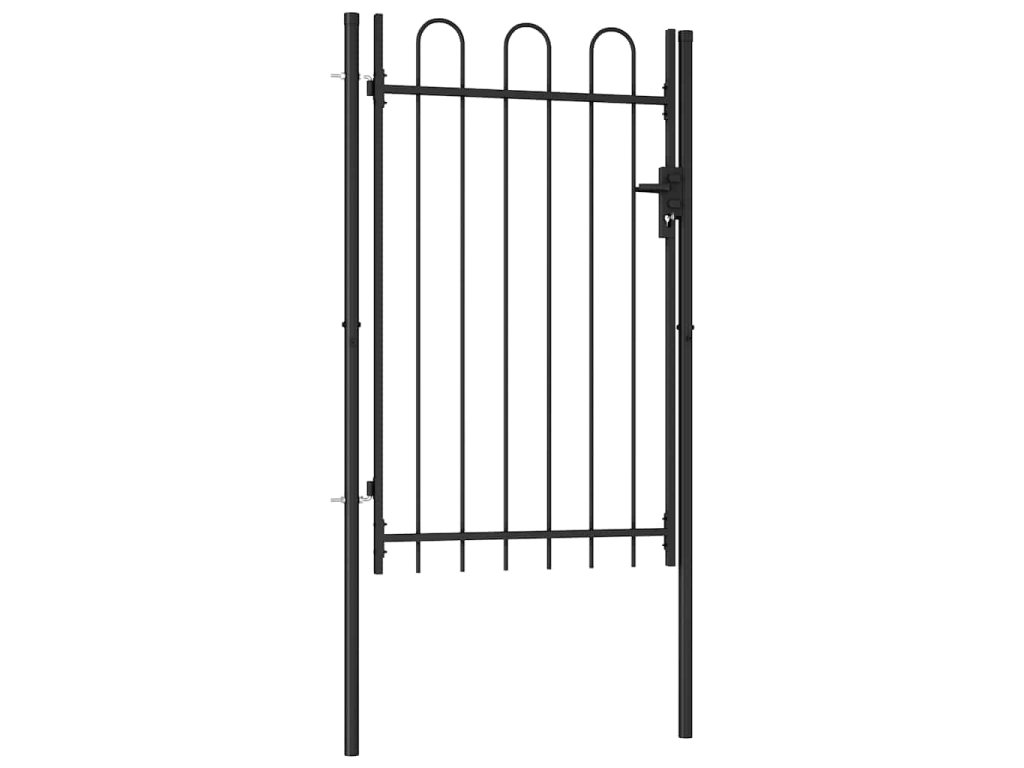 Brána pozostáva zo zvislých stĺpikov s oblúkom a z pevných vodorovných oporných tyčí, vďaka čomu zabezpečuje optimálnu bezpečnosť a súkromie a zároveň vytvára pôsobivý vstup na pozemok. Je vyrobená z odolnej ocele s práškovou povrchovou úpravou, vďaka čomu nepodlieha hrdzi ani korózii.
