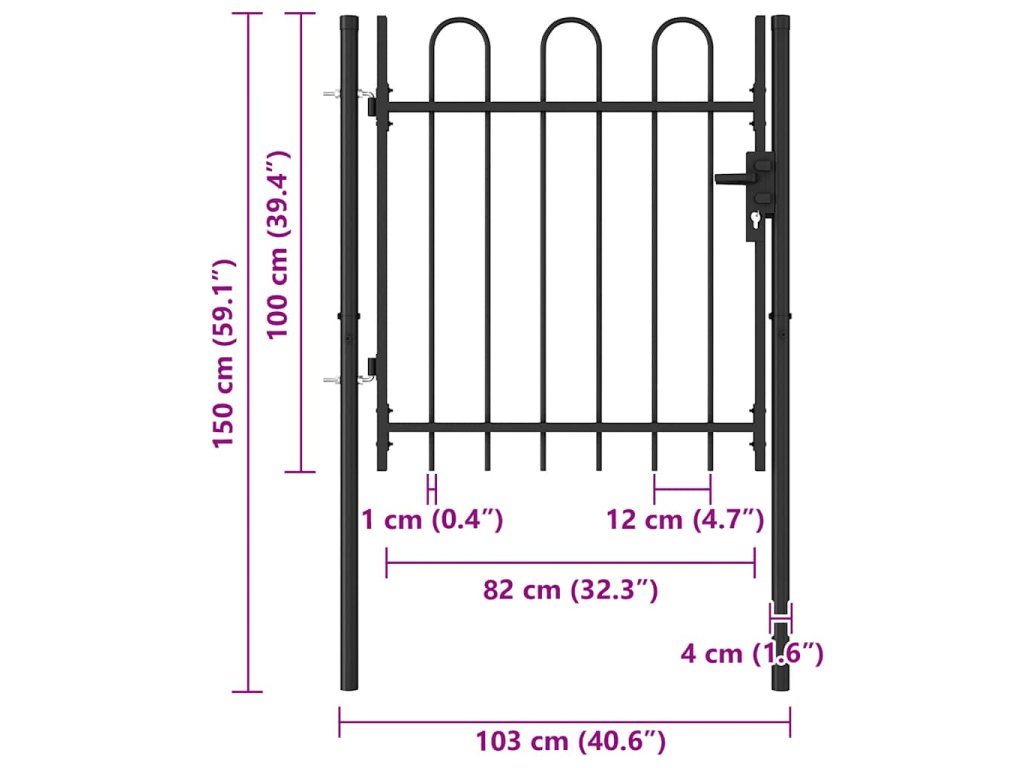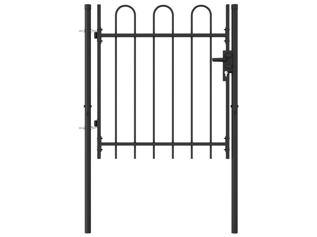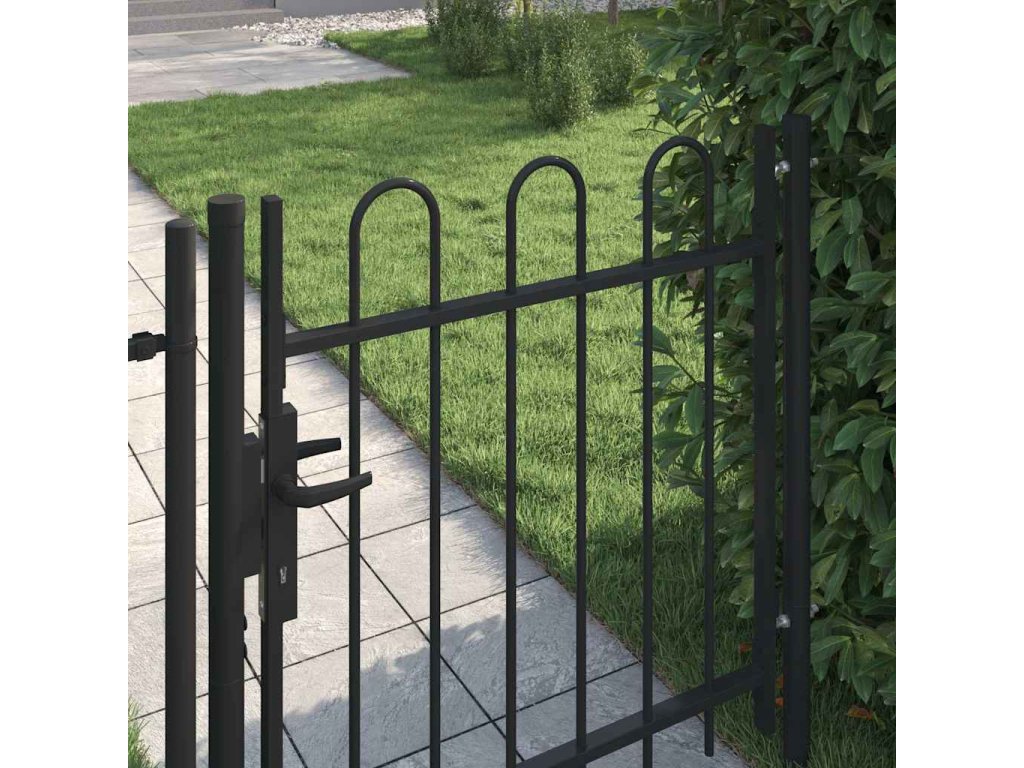 Brána pozostáva zo zvislých stĺpikov s oblúkom a z pevných vodorovných oporných tyčí, vďaka čomu zabezpečuje optimálnu bezpečnosť a súkromie a zároveň vytvára pôsobivý vstup na pozemok. Je vyrobená z odolnej ocele s práškovou povrchovou úpravou, vďaka čomu nepodlieha hrdzi ani korózii.