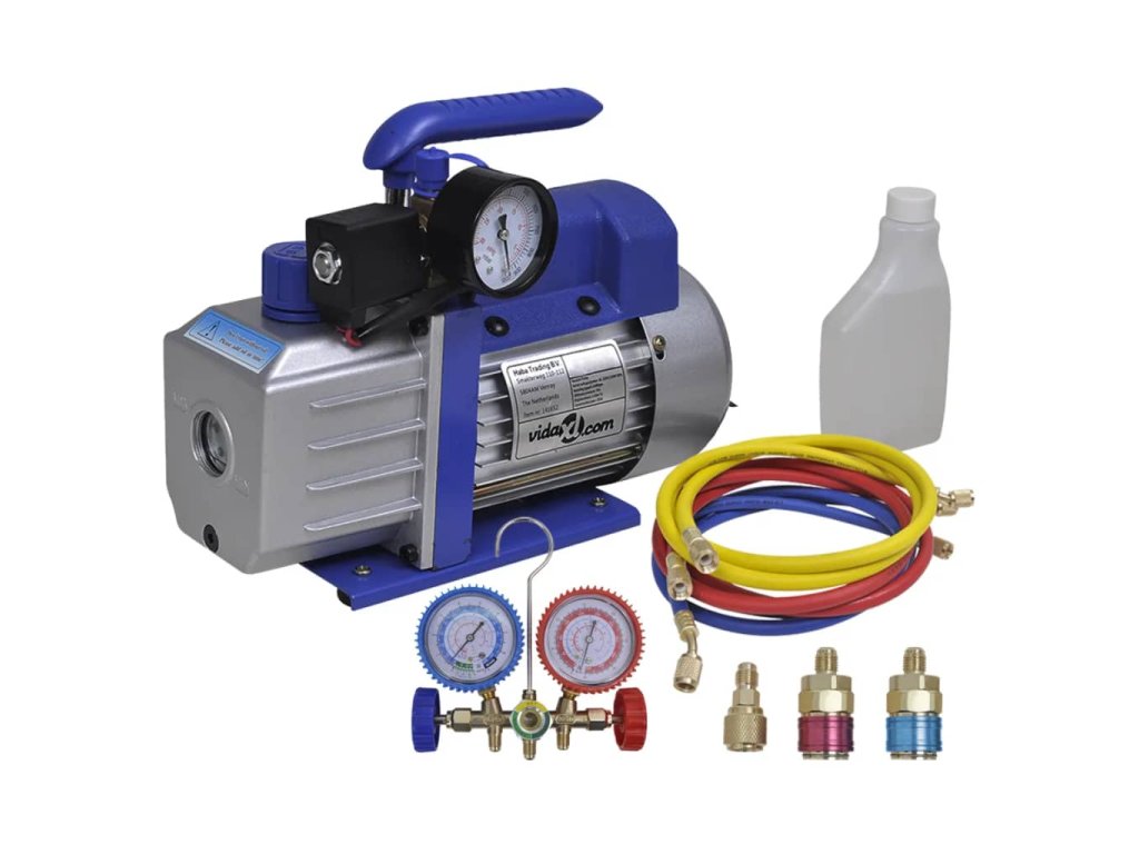 Toto vákuové čerpadlo je určené na profesionálne používanie v chladiacich a klimatizačných systémoch.Čerpadlo vytvára vákuum, prostredníctvom ktorého dôjde k následnému naplneniu klimatizačného systému chladivom. Vďaka svojim technickým vlastnostiam je čerpadlo vhodné na opravu chladiacich systémov, do tlačiarenských strojov, zdravotníckych zariadení, pri vakuovom balení, pri tvarovaní teplom a pri ďalších iných činnostiach. Čerpadlo má hliníkový kryt, praktický olejoznak, ktorý umožňuje kedykoľvek skontrolovať hladinu oleja a tlakomer na sledovanie prietoku chladiva. Má aj zabudovanú rúčku na jednoduchú prepravu.