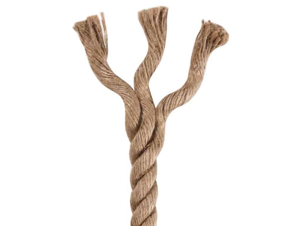 - Prírodný materiál: Toto konopné lano je napevno upletené z 3 malých prameňov zo 100 % prírodnej juty, vďaka čomu je pevné, trvácne, odolné voči poveternostným vplyvom a bezpečné.