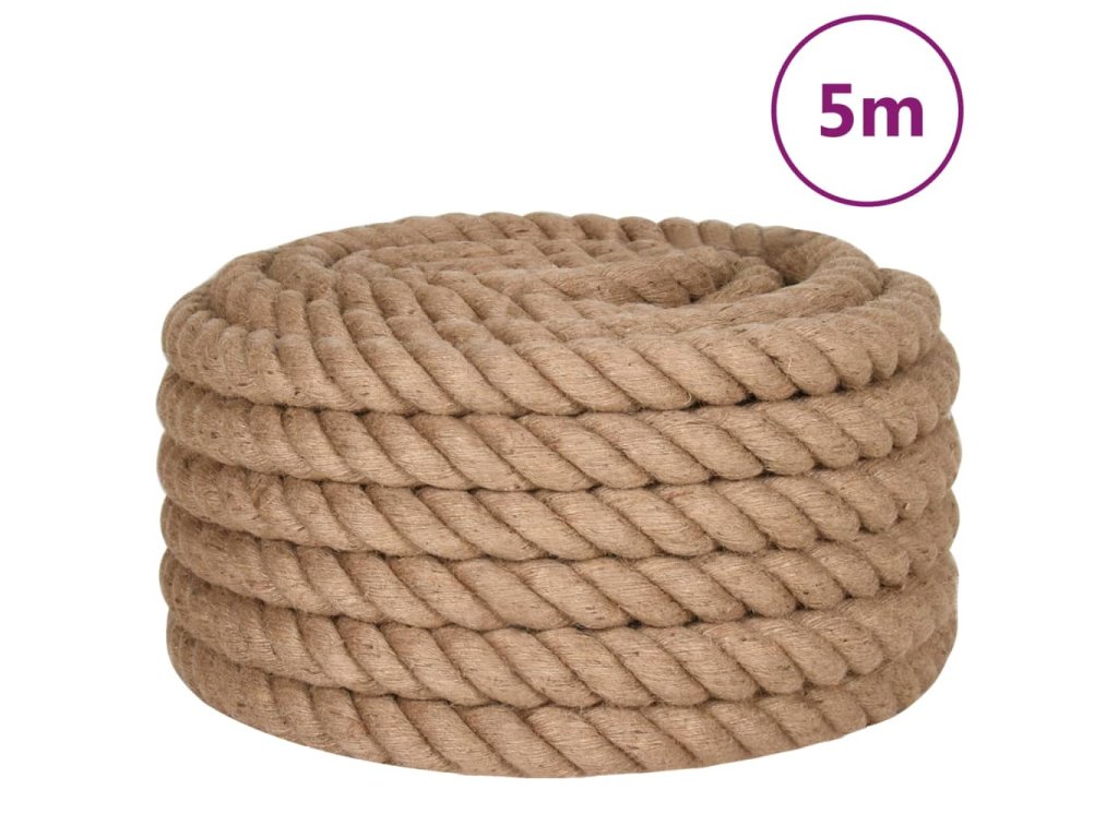- Prírodný materiál: Toto konopné lano je napevno upletené z 3 malých prameňov zo 100 % prírodnej juty, vďaka čomu je pevné, trvácne, odolné voči poveternostným vplyvom a bezpečné.