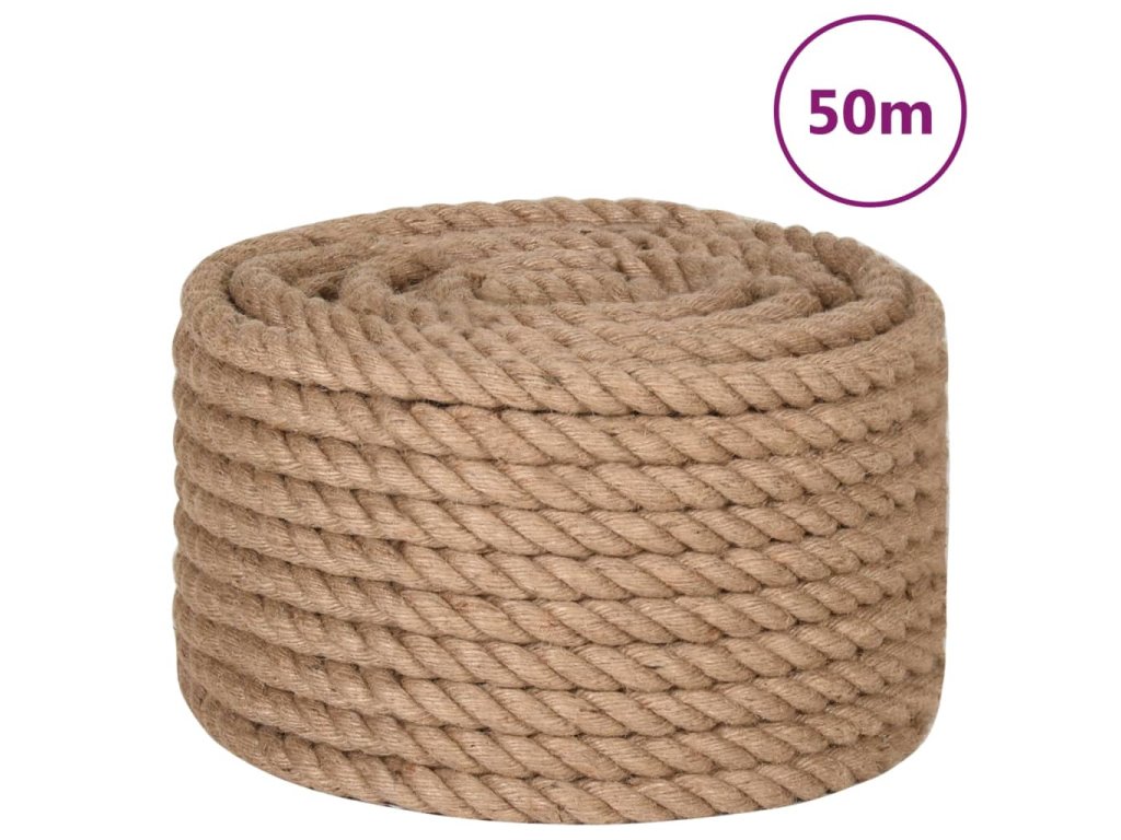 - Prírodný materiál: Toto konopné lano je napevno upletené z 3 malých prameňov zo 100 % prírodnej juty, vďaka čomu je pevné, trvácne, odolné voči poveternostným vplyvom a bezpečné.