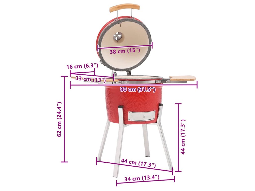 Tento keramický gril Kamado využíva ako palivo uhlie alebo drevo a má veľkú grilovaciu mriežku s priemerom 33 cm. Údiaci gril je ideálny na grilovanie, pečenie, údenie, varenie alebo len udržiavanie jedál teplých.