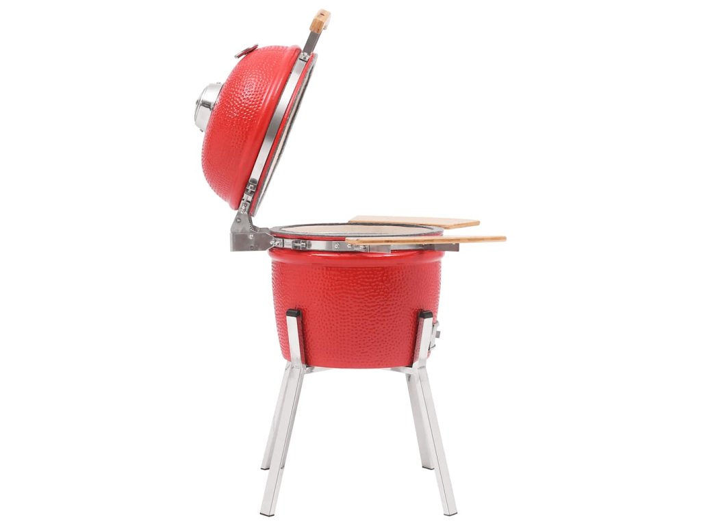 Keramický gril má veľmi pevné sklopné veko s prieduchom a vstavaným teplomerom. Vďaka vrstvenému prieduchu môžete ľahko ovládať prúdenie vzduchu aj teplotu. Dve sklopné bočné police vám poskytnú miesto, kde budete mať svoje nástroje na grilovanie a príslušenstvo na varenie poruke. Vysokokvalitná keramika s glazovanou jamkovou vonkajšou povrchovou úpravou je trvácna a esteticky vyzerajúca. Vďaka tomu umožňuje jedinečný proces varenia, ktorý jedlu dodáva chuť a zároveň ho udržiava výnimočne krehké! Nerezové nožičky dodávajú grilu mimoriadnu stabilitu.