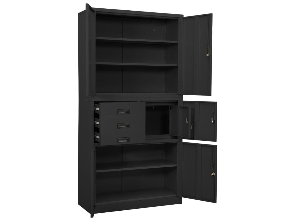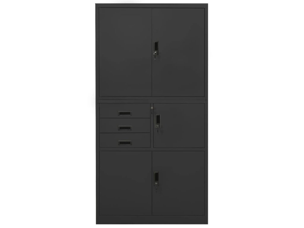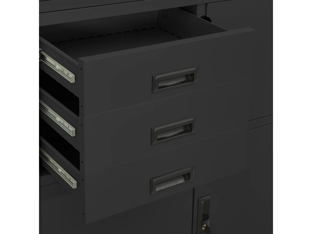 Táto kancelárska skrinka je vyrobená z ocele, vďaka čomu je odolná a ľahko sa čistí. Vďaka skrinke a 3 nastaviteľným policiam vám umožňuje prehľadne triediť šanóny do rôznych kategórií a uchovávať ich v bezpečí. Zásuvky s 3-dielnymi guľôčkovými koľajnicami zaisťujú plynulé otváranie a zatváranie aj pri zvýšenej záťaži. Táto skrinka sa vďaka svojmu ikonickému dizajnu bude hodiť do každej kancelárie.
