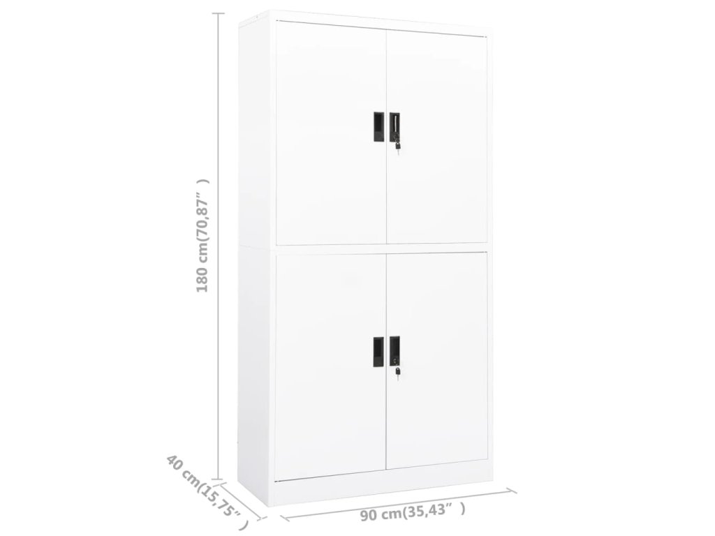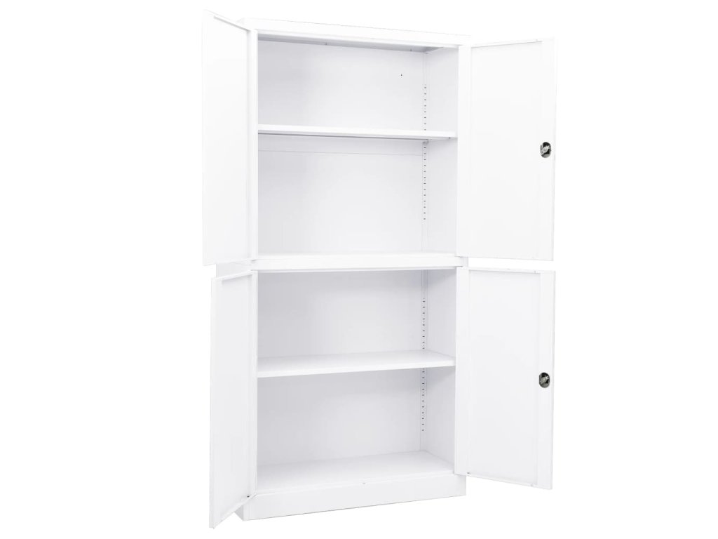 Úložná skriňa je vyrobená z ocele, takže je mimoriadne pevná a odolná. Skriňa má 4 dvierka a nastaviteľné police, ktoré umožňujú ukladať spisy rôznych veľkostí. Skriňa na dokumenty je vybavená aj zámkami, ktoré chránia vaše osobné dokumenty pred neželanými hosťami.