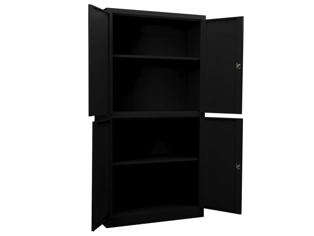 Úložná skriňa je vyrobená z ocele, takže je mimoriadne pevná a odolná. Skriňa má 4 dvierka a nastaviteľné police, ktoré umožňujú ukladať spisy rôznych veľkostí. Skriňa na dokumenty je vybavená aj zámkami, ktoré chránia vaše osobné dokumenty pred neželanými hosťami.