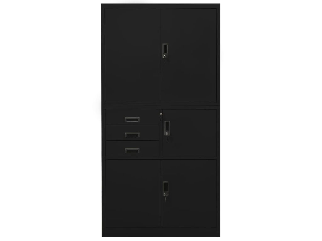Táto kancelárska skrinka je vyrobená z ocele, vďaka čomu je odolná a ľahko sa čistí. Vďaka skrinke a 3 nastaviteľným policiam vám umožňuje prehľadne triediť šanóny do rôznych kategórií a uchovávať ich v bezpečí. Zásuvky s 3-dielnymi guľôčkovými koľajnicami zaisťujú plynulé otváranie a zatváranie aj pri zvýšenej záťaži. Táto skrinka sa vďaka svojmu ikonickému dizajnu bude hodiť do každej kancelárie.