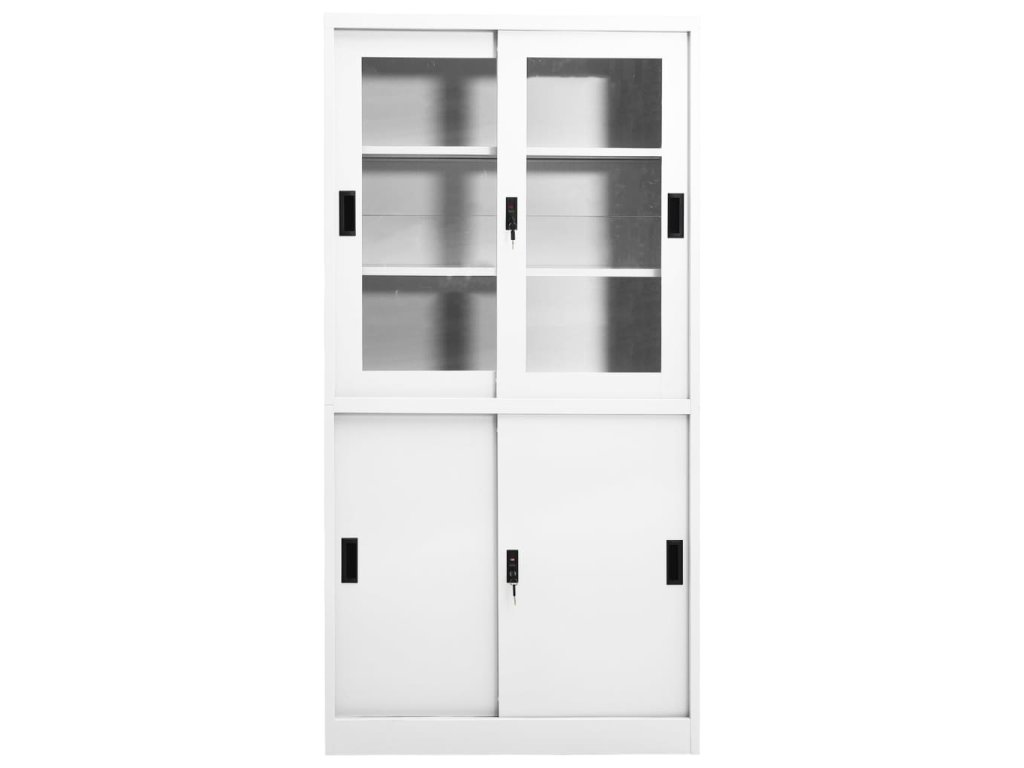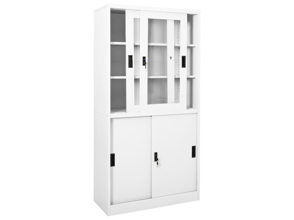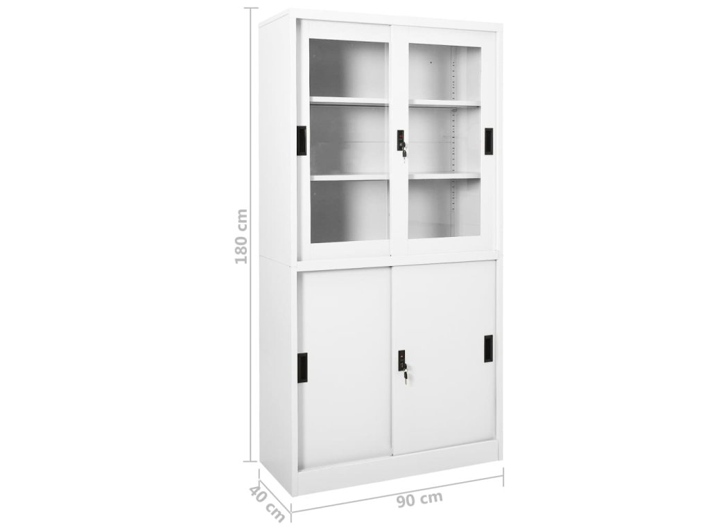 Úložná skriňa je vyrobená z ocele a tvrdeného skla, takže je mimoriadne pevná a odolná. Posuvné dvere zaisťujú plynulé otváranie a zatváranie. Vďaka 3 nastaviteľným policiam vám táto kartotéka umožňuje prehľadne triediť spisy do rôznych kategórií. Kartotéka je vybavená aj zámkami, ktoré chránia vaše osobné dokumenty pred neželanými hosťami.