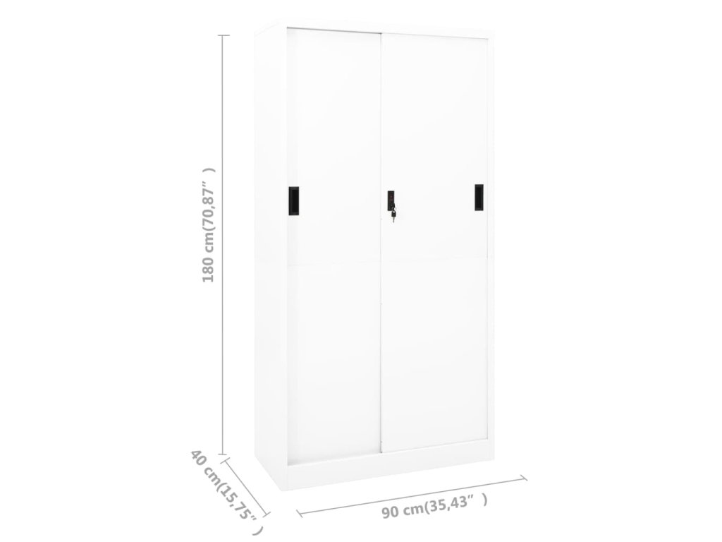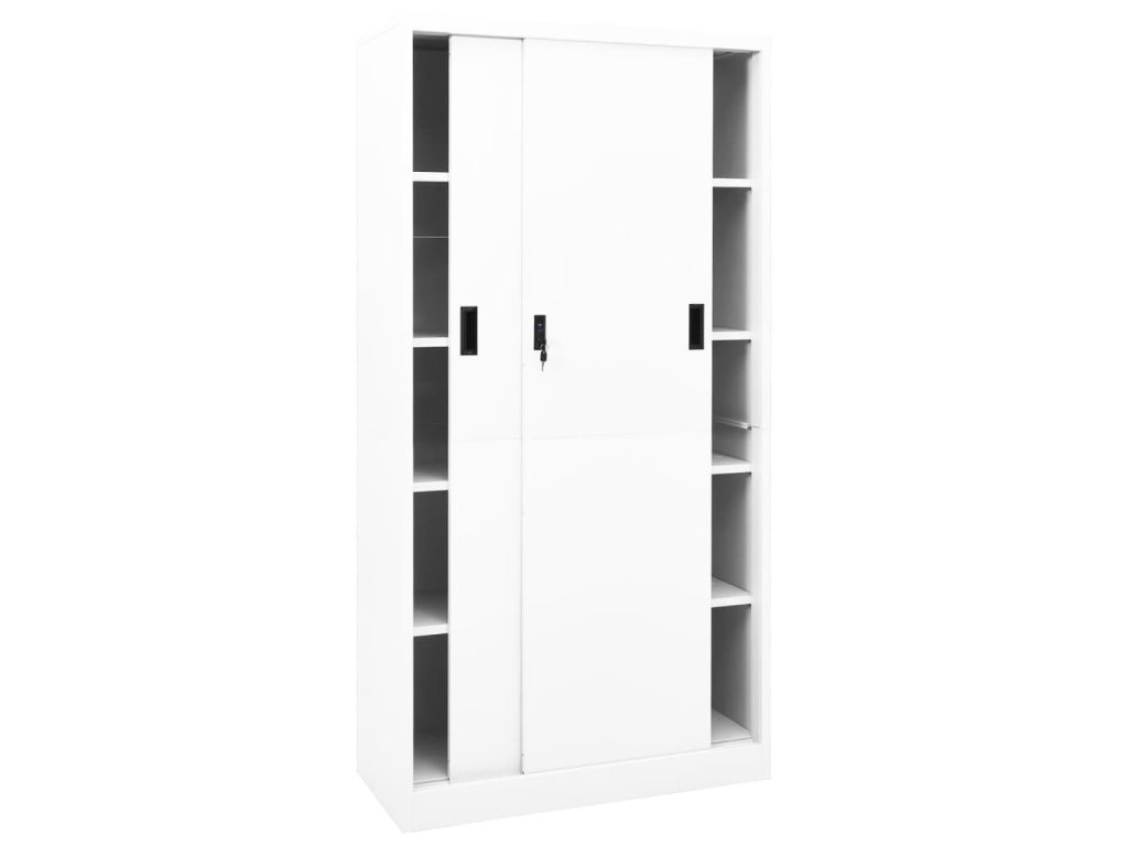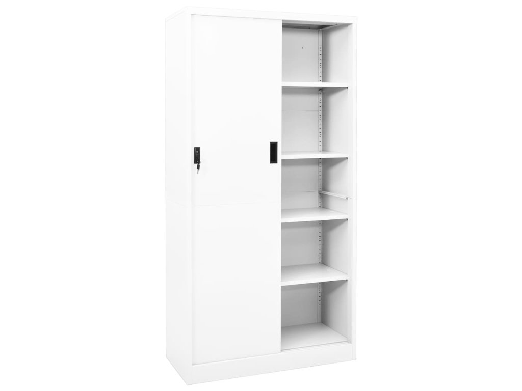 Úložná skriňa je vyrobená z ocele, vďaka čomu je mimoriadne pevná a odolná. Posuvné dvere zaisťujú plynulé otváranie a zatváranie skrinky. S nastaviteľnými policami je skrinka vhodná na uloženie zakladačov rôznych veľkostí. Skriňa je vybavená aj zámkom, ktorý ochráni vaše osobné dokumenty pred neželanými hosťami.