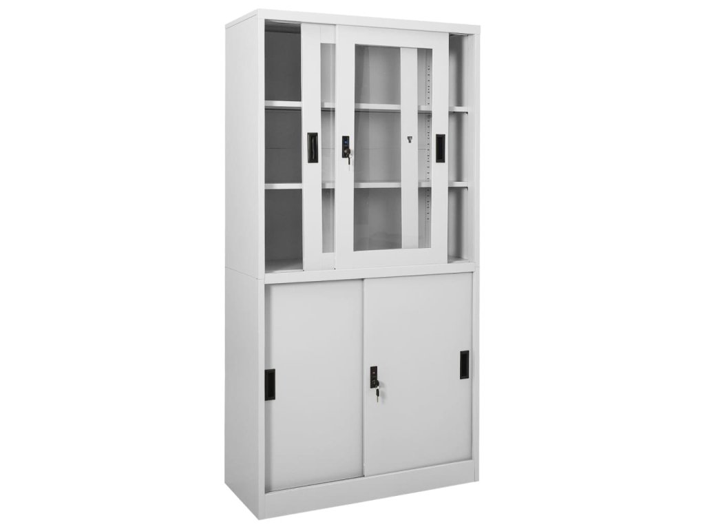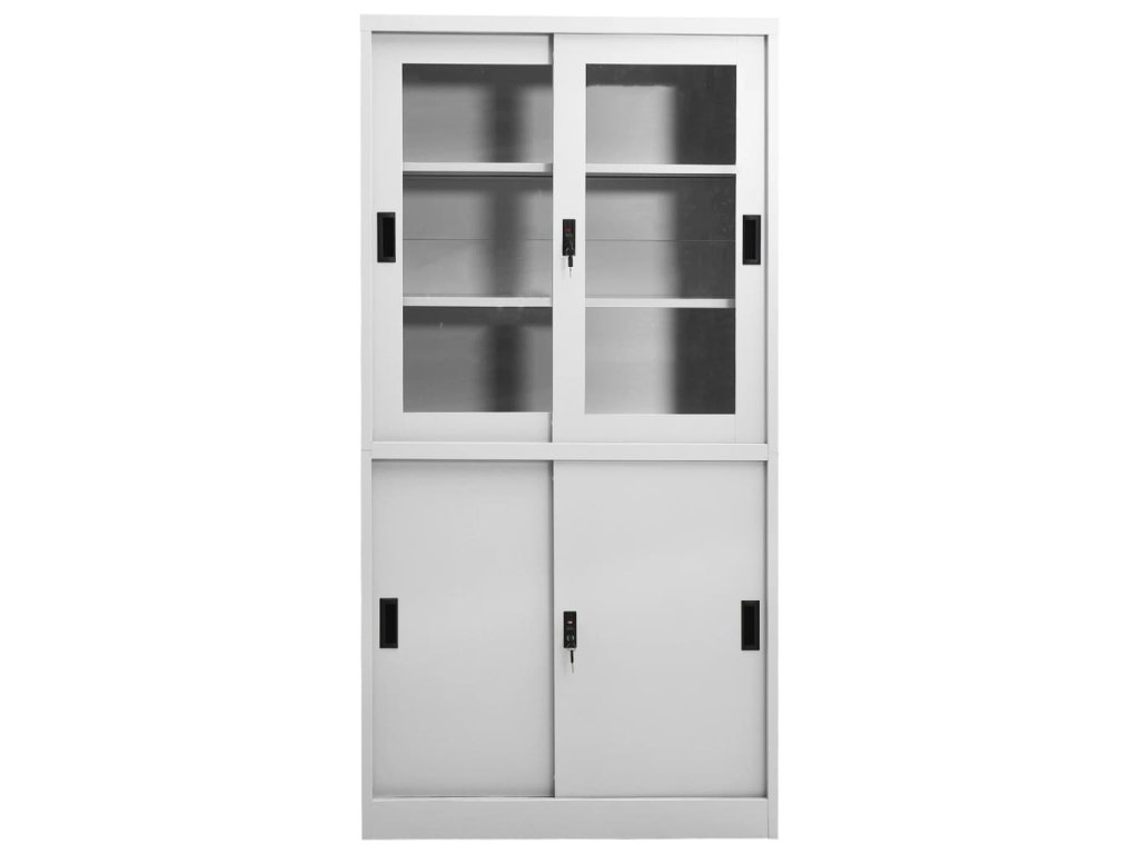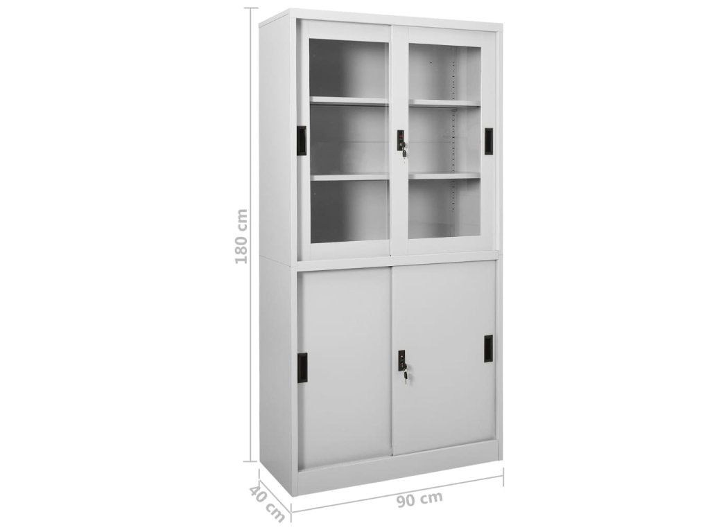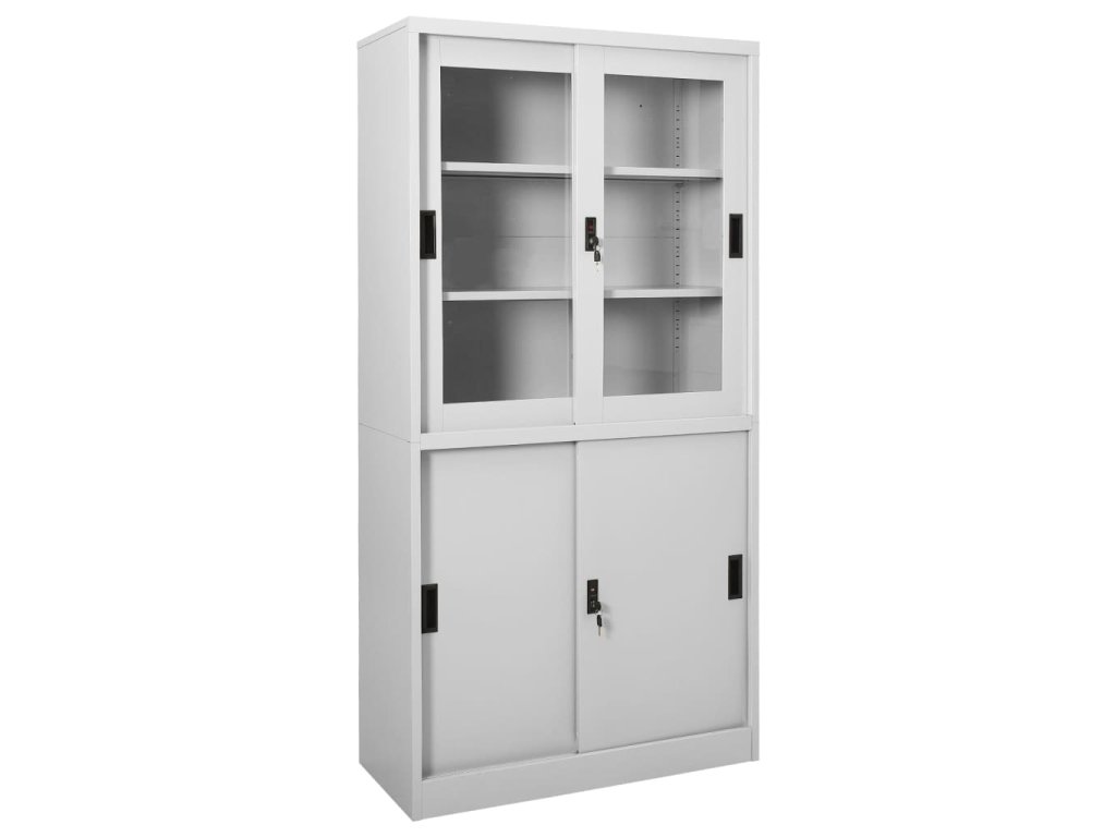 Úložná skriňa je vyrobená z ocele a tvrdeného skla, takže je mimoriadne pevná a odolná. Posuvné dvere zaisťujú plynulé otváranie a zatváranie. Vďaka 3 nastaviteľným policiam vám táto kartotéka umožňuje prehľadne triediť spisy do rôznych kategórií. Kartotéka je vybavená aj zámkami, ktoré chránia vaše osobné dokumenty pred neželanými hosťami.