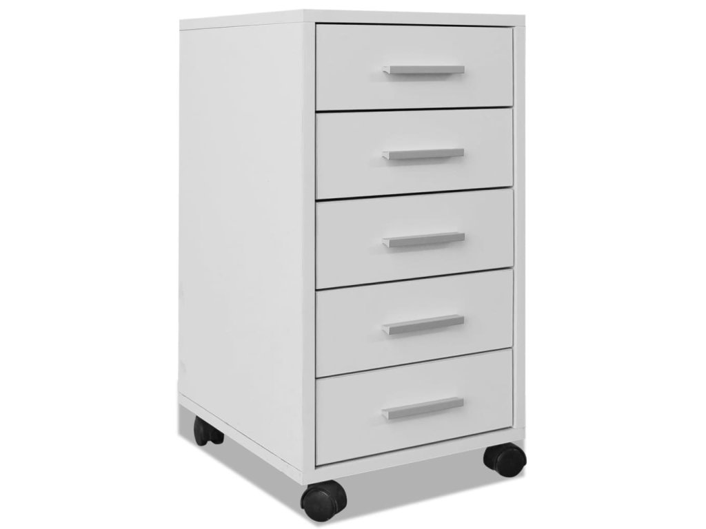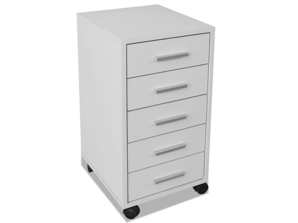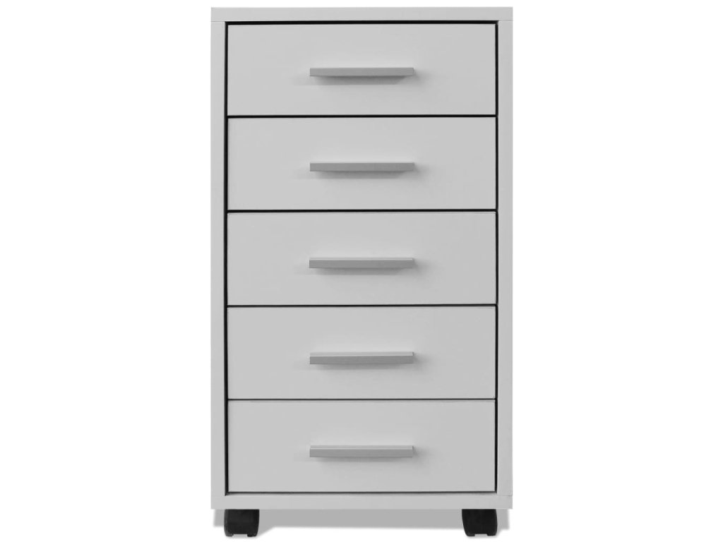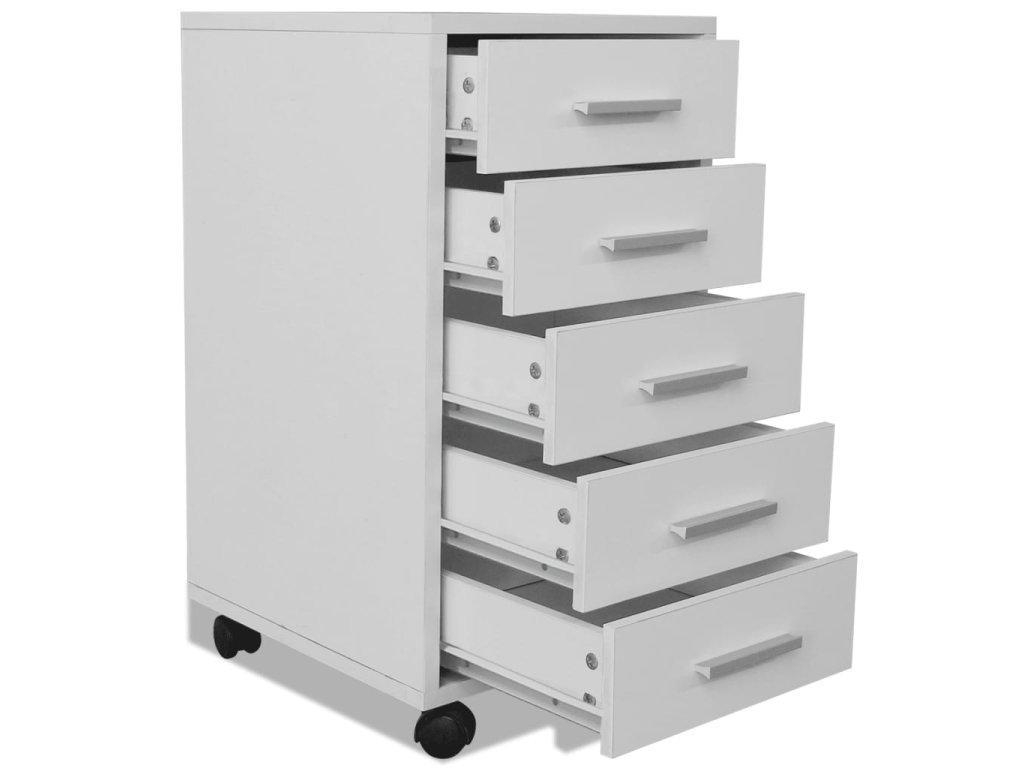 Táto kancelárska skrinka je vyrobená z vysoko kvalitných materiálov vďaka čomu je silná a odolná. Hliníkové rúčky na zásuvkách jej dodávajú štýlový vzhľad. Skrinka má päť zásuviek, ktoré poskytujú dostatok úložného priestoru pre dokumenty, notebooky, perá, kancelárske spinky, kľúče a iné kancelárske potreby. Vďaka svojim 4 kolieskam môže byť táto skrinka flexibilne umiestnená a jednoducho sa dá premiestniť.