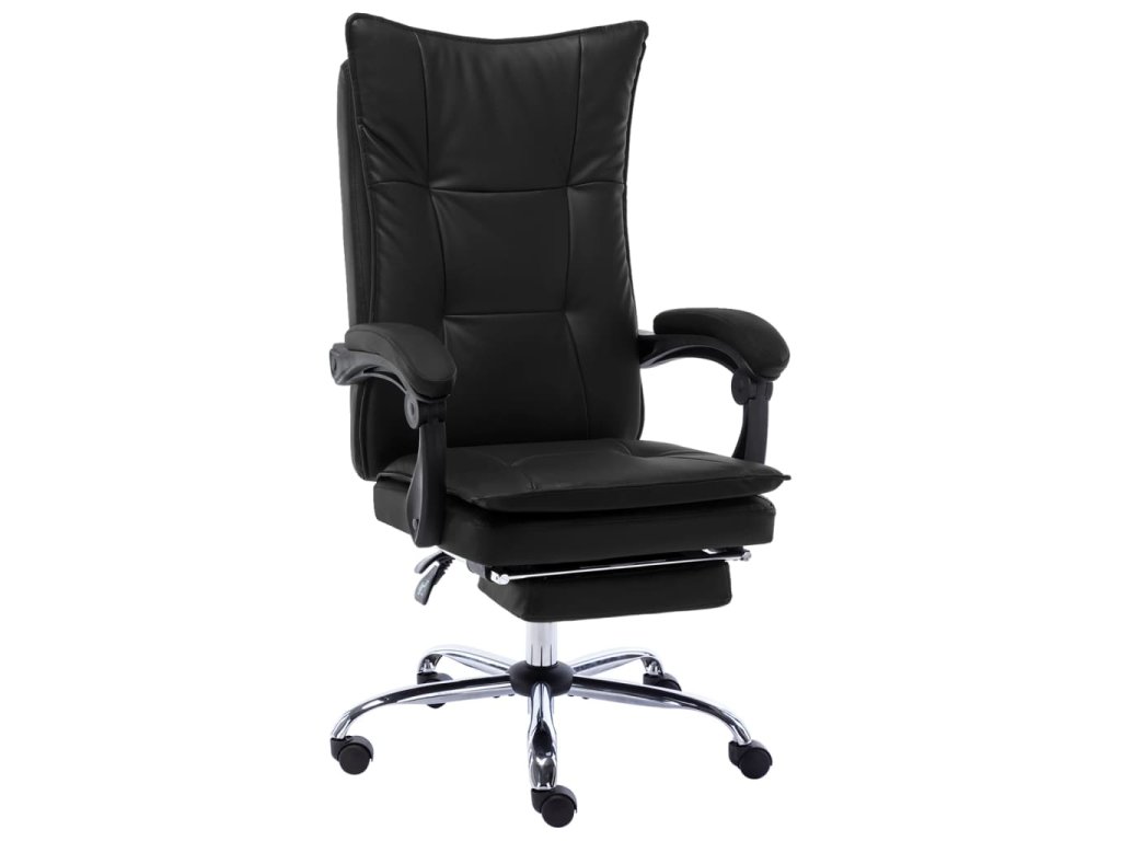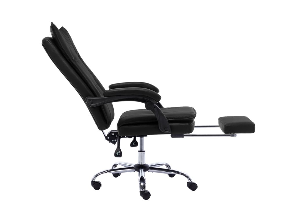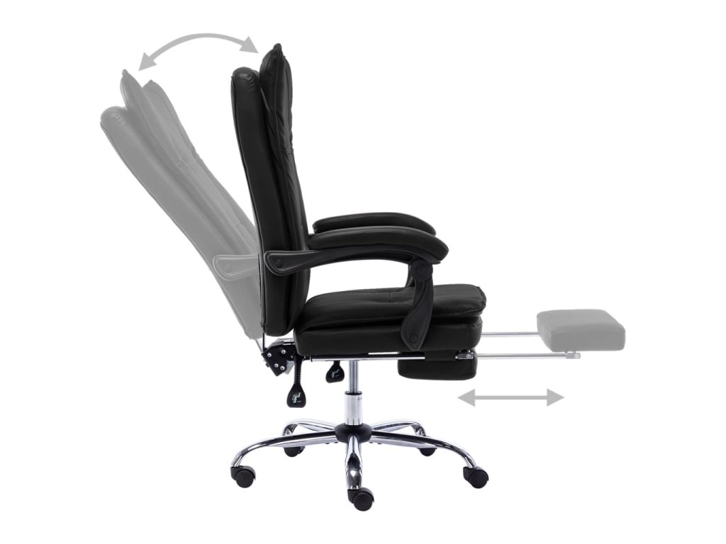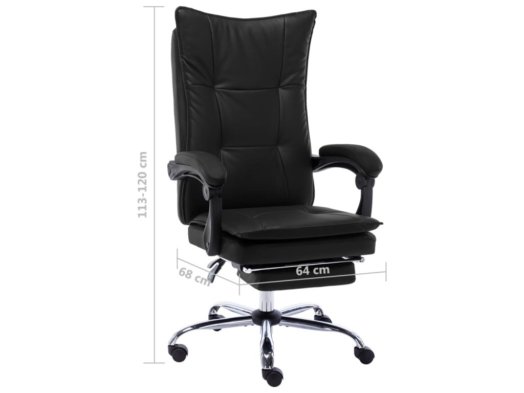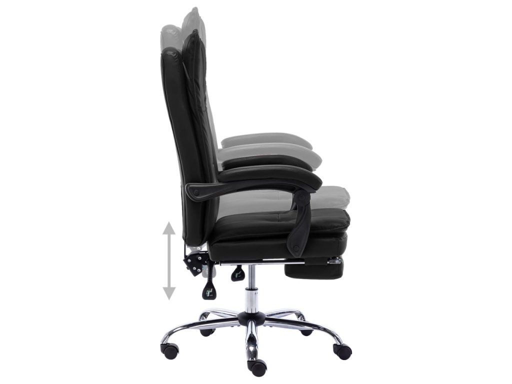 Kancelárska stolička má dizajn s vysokou chrbtovou opierkou, podnožkou a zakrivenou lakťovou opierkou. Má husto polstrovanú sedačku. Kreslo tak ponúka pohodlie aj pri dlhej práci. Výškovo nastaviteľný dizajn vám umožní prispôsobiť sa výške stola a dosiahnuť väčšie pohodlie a zdravé vyrovnanie chrbtice. Toto polohovacie kreslo je vybavené nylonovými kolieskami, takže ho môžete jednoducho presúvať. Dá sa nakloniť od 95° do 150°, aby malo požadovanú polohu pre dokonalý relax.