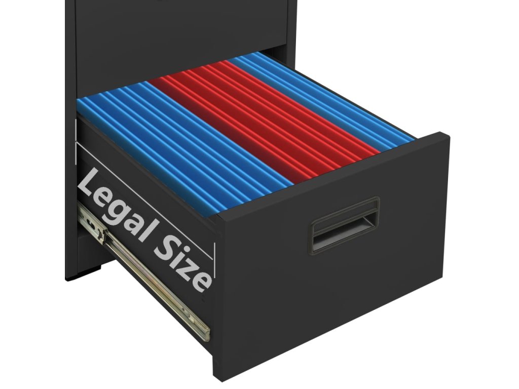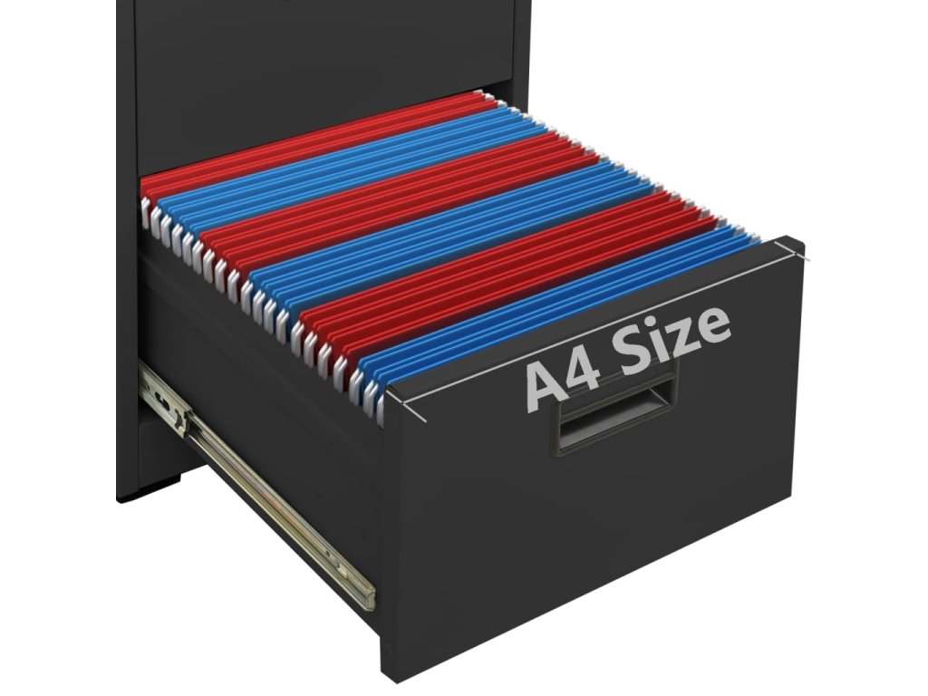 Táto kancelárska skriňa je vyrobená z ocele, takže je odolná a ľahko sa čistí. Vďaka 2 zásuvkám a zámku vám táto kartotéka umožňuje prehľadne triediť spisy do rôznych kategórií a uchovávať ich v bezpečí. Každá zásuvka je vybavená 1 odnímateľnou závesnou lištou, ktorú možno ľubovoľne kombinovať a ukladať do nej zložky oficiálnych formátov a A4. Zásuvky s 3 sekciami s guľôčkovými ložiskami zabezpečujú hladké otváranie a zatváranie aj pri zvýšenej záťaži. Zásuvky sa dajú úplne vysunúť.