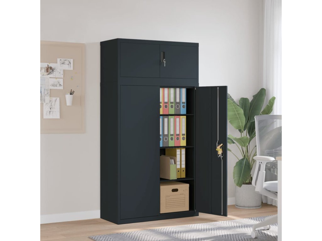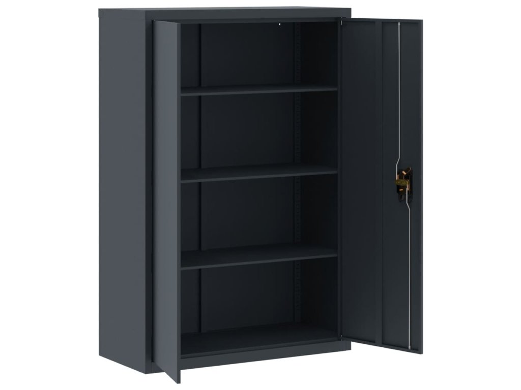 - Nastaviteľné police: Úložná skrinka obsahuje 3 nastaviteľné police, ktoré vám umožňujú prehľadne triediť šanóny do rôznych kategórií.