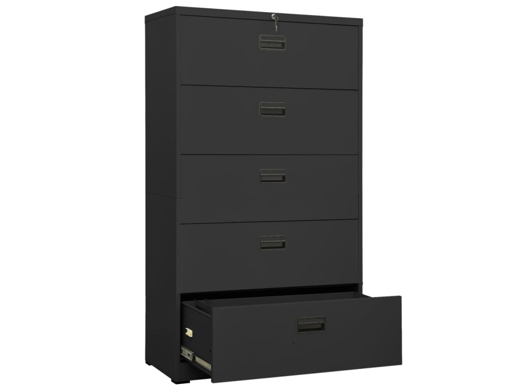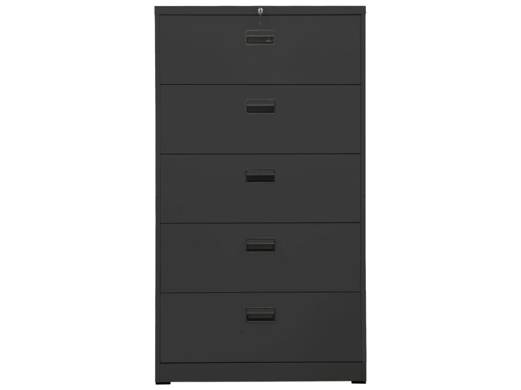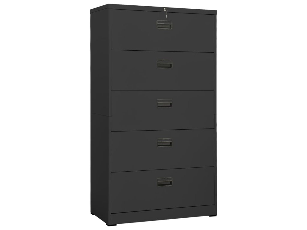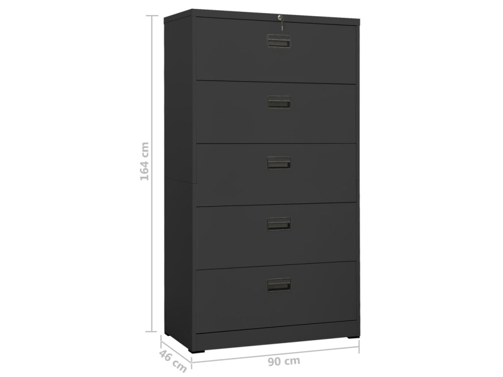 Táto kancelárska skriňa je vyrobená z ocele, takže je odolná a ľahko sa čistí. Vďaka 5 zásuvkám a zámku vám táto kartotéka umožňuje prehľadne triediť spisy do rôznych kategórií a uchovávať ich v bezpečí. Každá zásuvka je vybavená 1 odnímateľnou závesnou lištou, ktorú možno ľubovoľne kombinovať a ukladať do nej zložky listových formátov, oficiálnych formátov a A4. Zásuvky s 3 sekciami s guľôčkovými ložiskami zabezpečujú hladké otváranie a zatváranie aj pri zvýšenej záťaži. Zásuvky sa dajú úplne vysunúť.