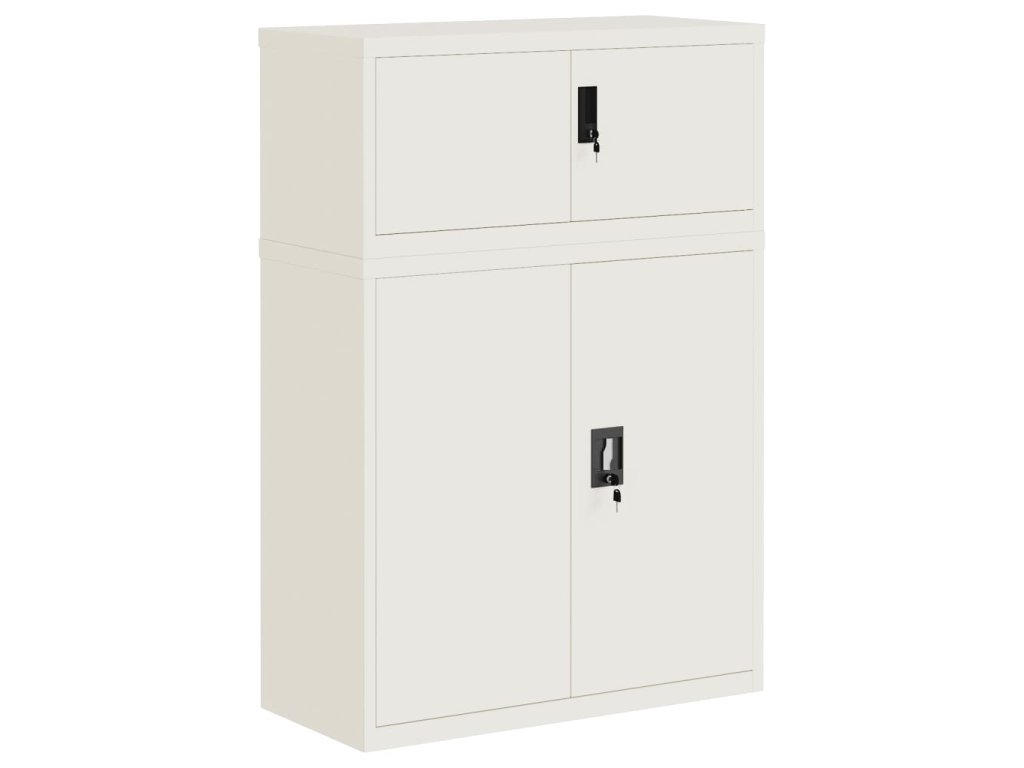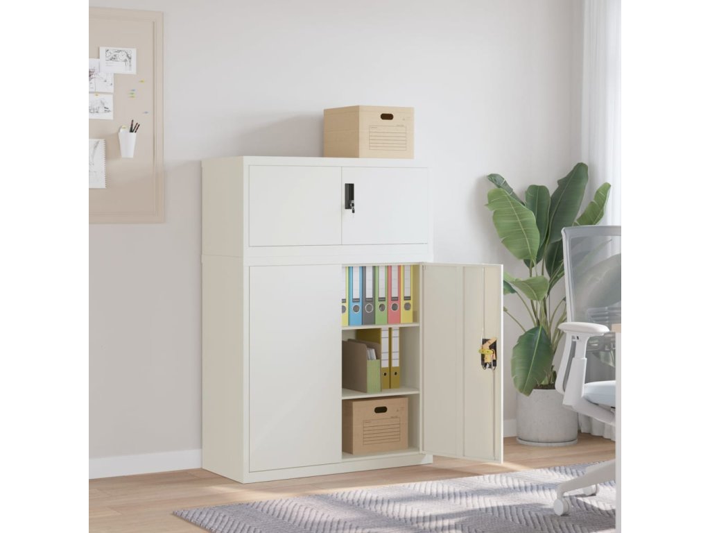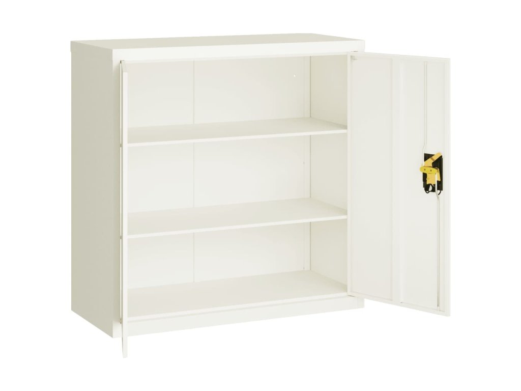 - Nastaviteľné police: Úložná skrinka obsahuje 2 nastaviteľné police, ktoré vám umožňujú prehľadne triediť šanóny do rôznych kategórií.