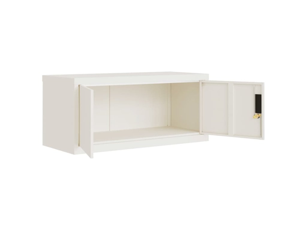 - Nastaviteľné police: Úložná skrinka obsahuje 2 nastaviteľné police, ktoré vám umožňujú prehľadne triediť šanóny do rôznych kategórií.
