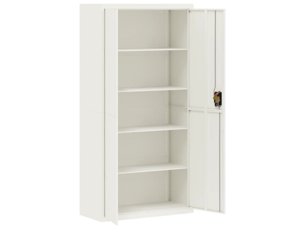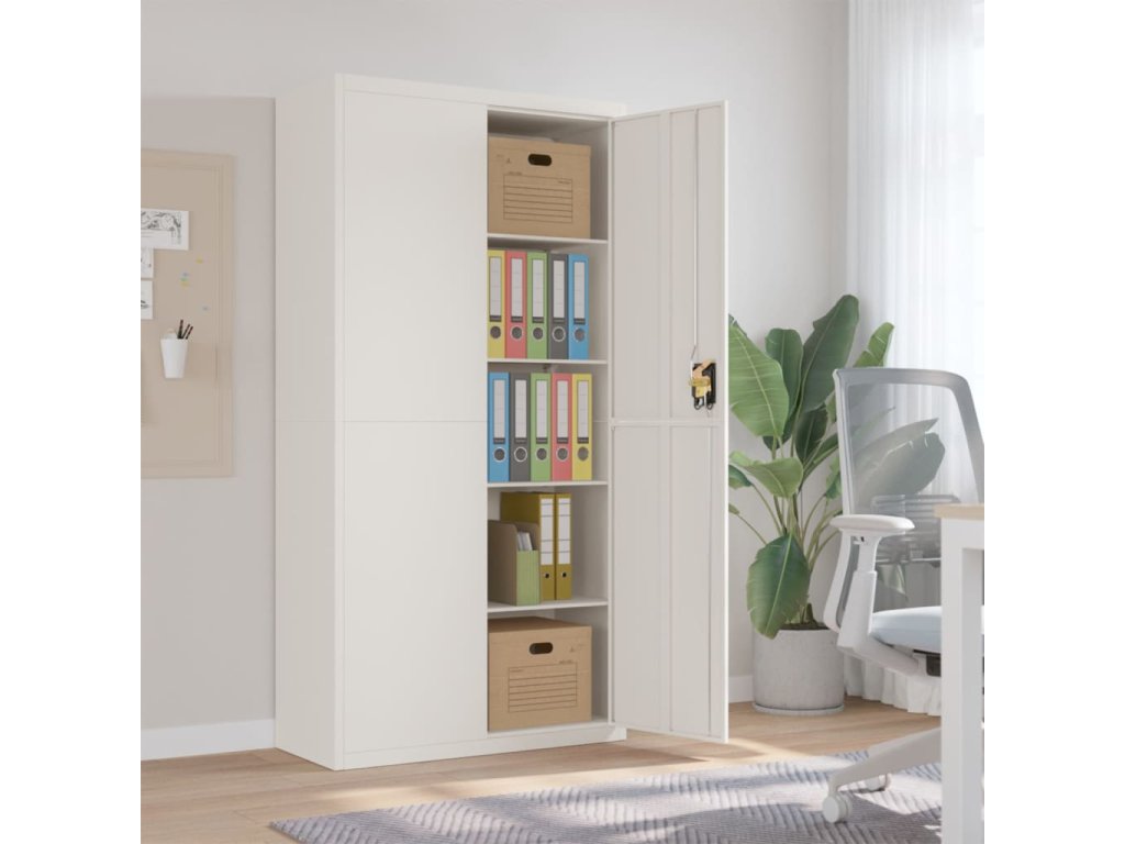 - Nastaviteľné police: Úložná skrinka obsahuje 4 nastaviteľné police, ktoré vám umožňujú prehľadne triediť šanóny do rôznych kategórií.