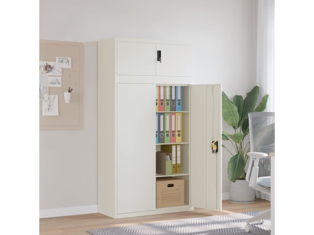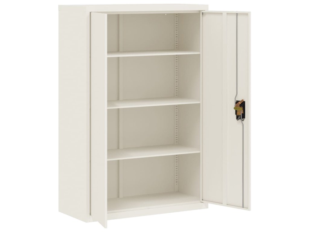 - Nastaviteľné police: Úložná skrinka obsahuje 3 nastaviteľné police, ktoré vám umožňujú prehľadne triediť šanóny do rôznych kategórií.