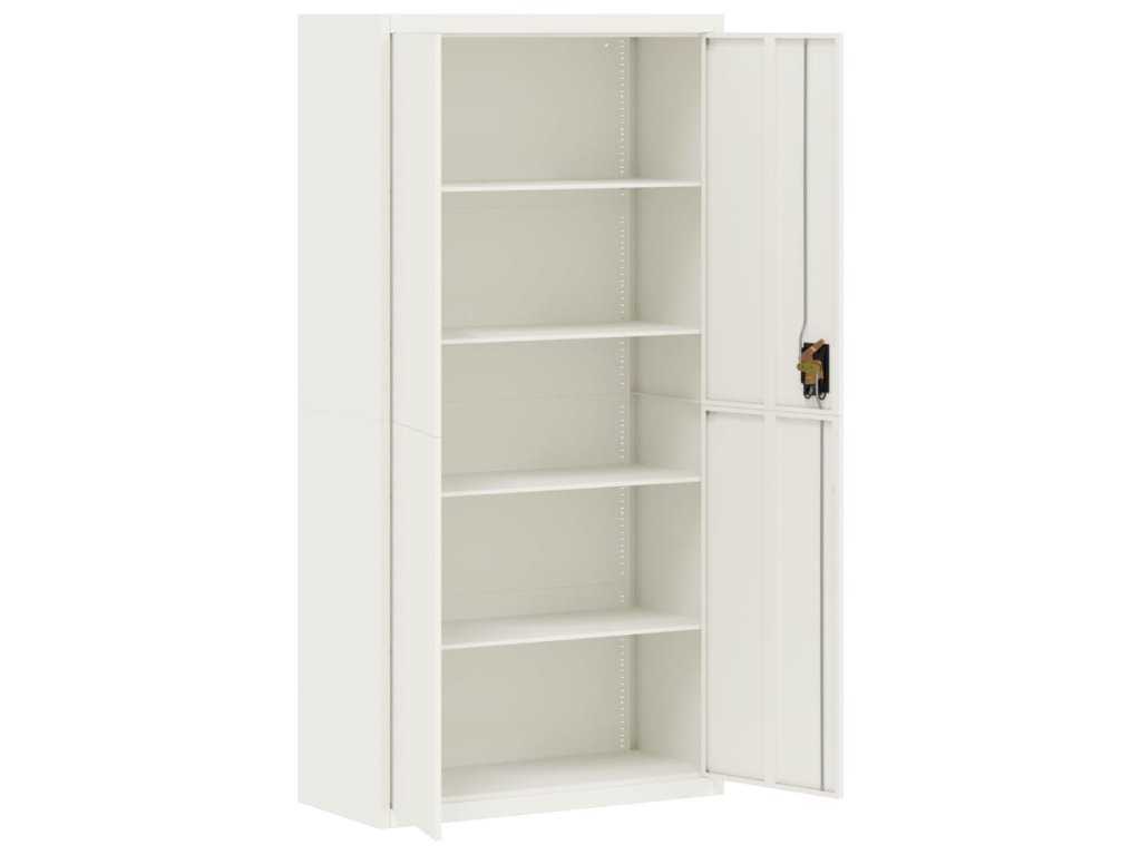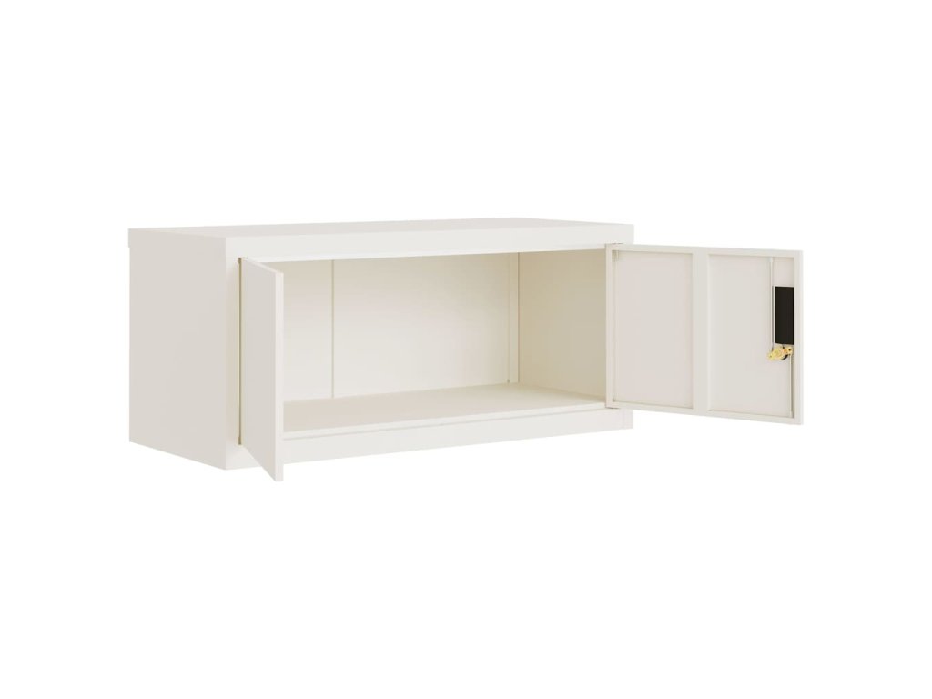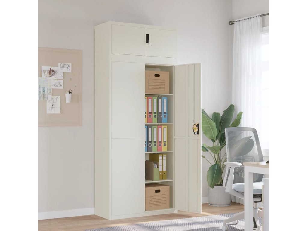 - Nastaviteľné police: Úložná skrinka obsahuje 4 nastaviteľné police, ktoré vám umožňujú prehľadne triediť šanóny do rôznych kategórií.