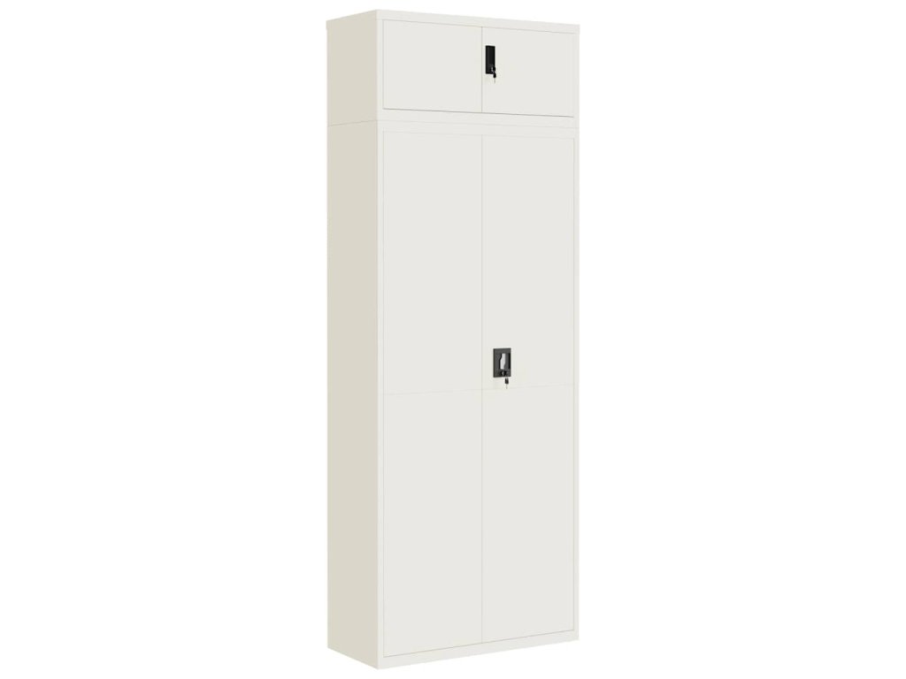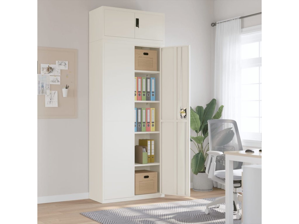 - Nastaviteľné police: Úložná skrinka obsahuje 4 nastaviteľné police, ktoré vám umožňujú prehľadne triediť šanóny do rôznych kategórií.