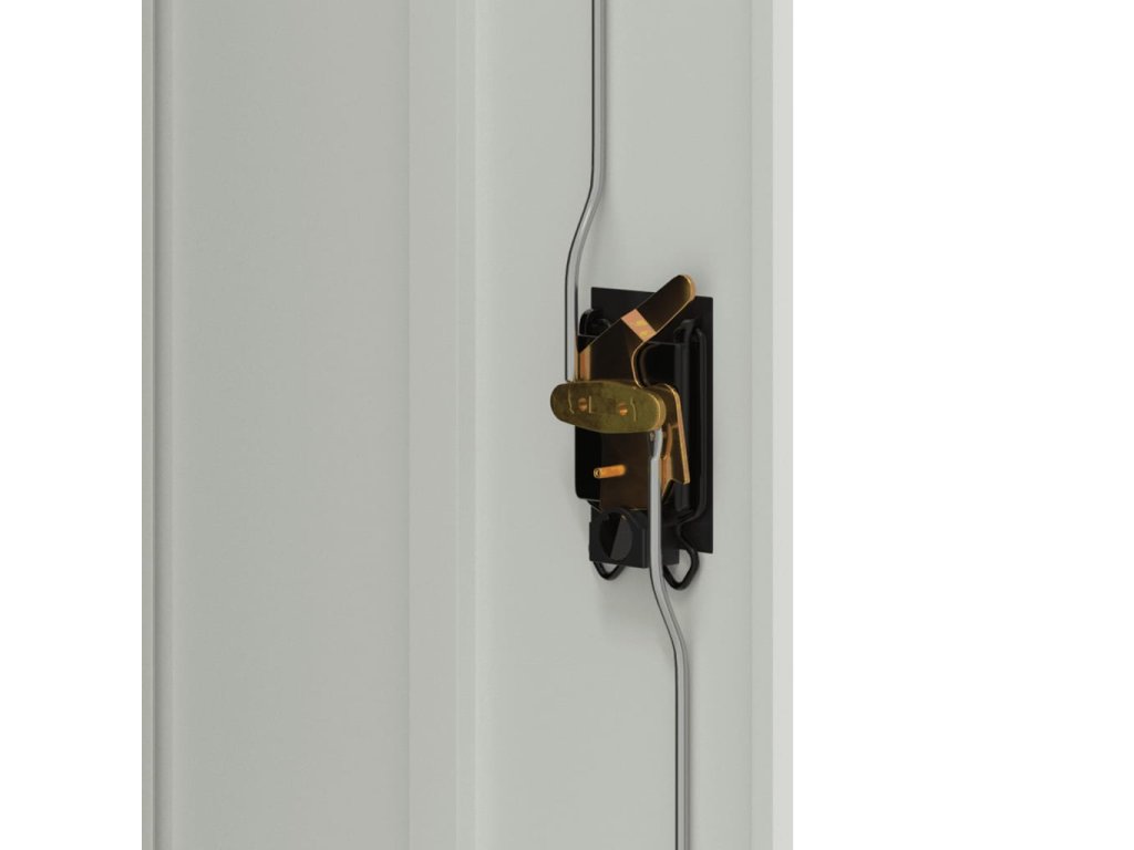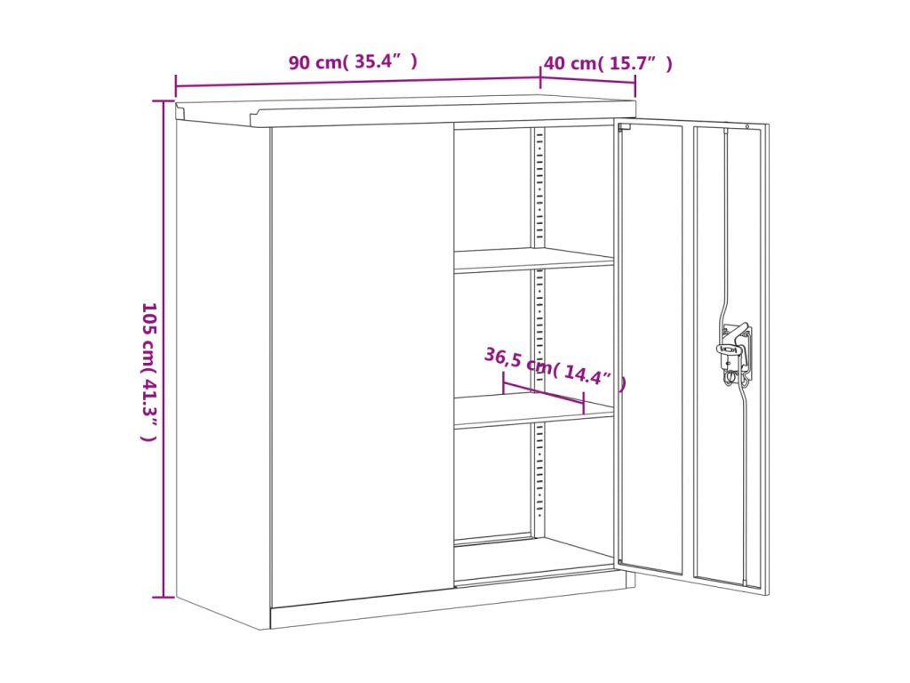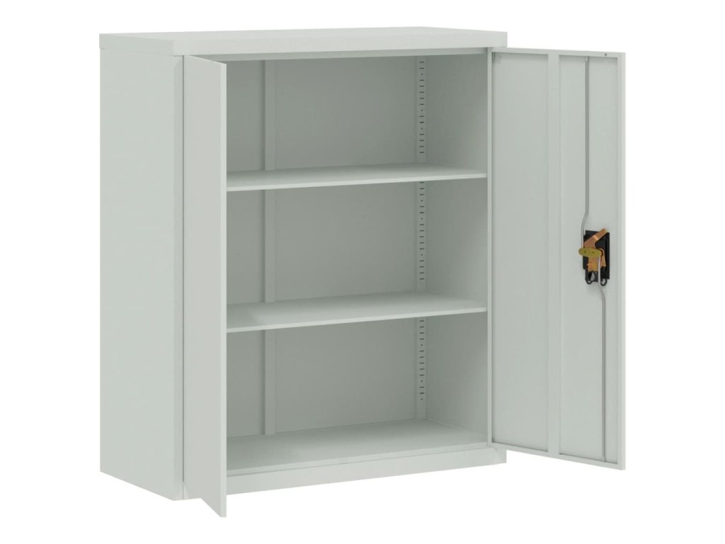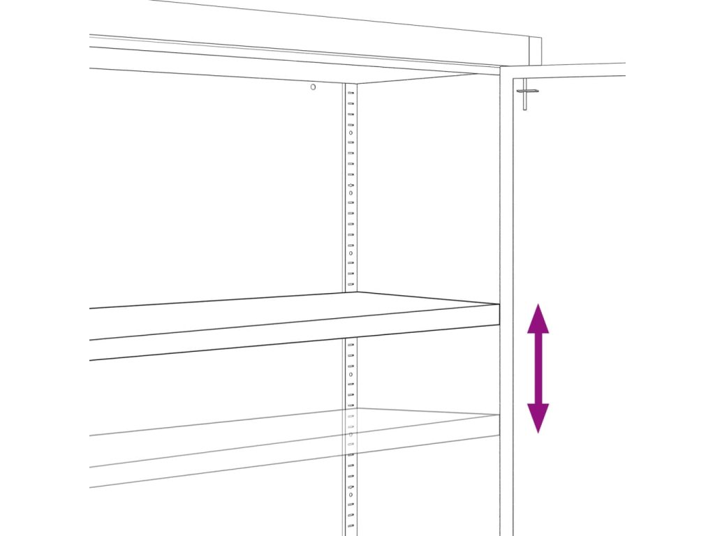 - Nastaviteľné police: Úložná skrinka obsahuje 2 nastaviteľné police, ktoré vám umožňujú prehľadne triediť šanóny do rôznych kategórií.