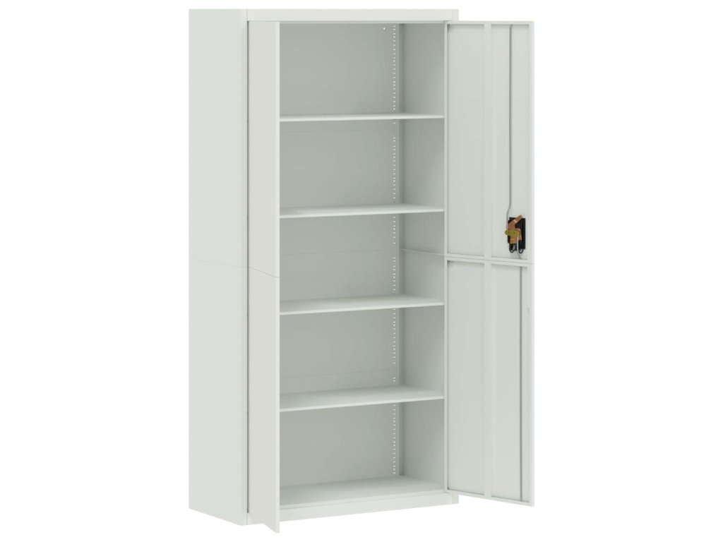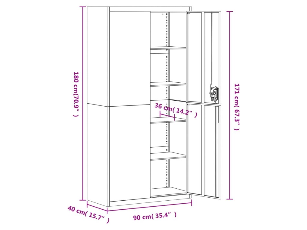 - Nastaviteľné police: Úložná skrinka obsahuje 4 nastaviteľné police, ktoré vám umožňujú prehľadne triediť šanóny do rôznych kategórií.