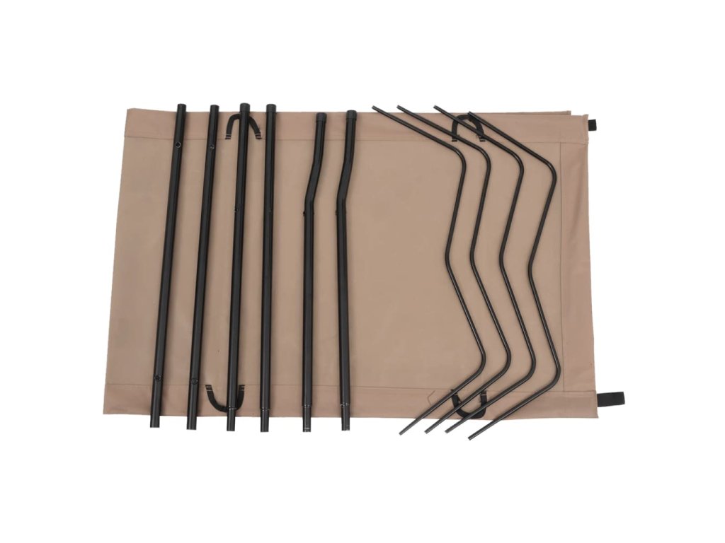 Kempingová posteľ je vyrobená z pevnej oxfordskej látky a ocele, vďaka čomu je pohodlná, veľmi stabilná a rubustná. Má maximálnu nosnosť 120 kg.
