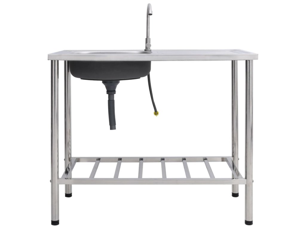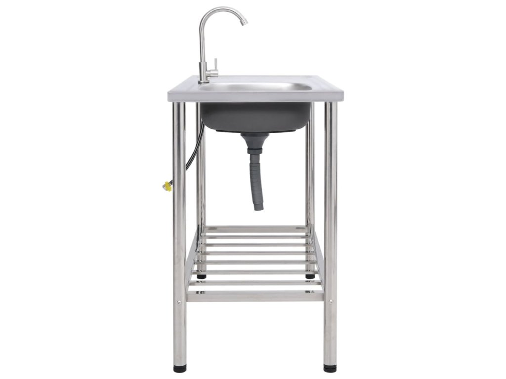 Táto záhradná kuchynka je vyrobená z nehrdzavejúcej ocele, vďaka čomu je odolná proti poškriabaniu a nárazom, je veľmi trvácna a vhodná na styk s potravinami. Je tiež odolná voči nečistotám a škvrnám, takže sa ľahko čistí. Mimoriadne hlboké umývadlo poskytuje dostatok priestoru na umývanie veľkých panvíc a riadu. Odkvapkávacia plocha je praktická nielen pri ručnom umývaní riadu, ale aj ako ďalšie miesto na krájanie zeleniny. Drez sa navyše ľahko prepravuje.