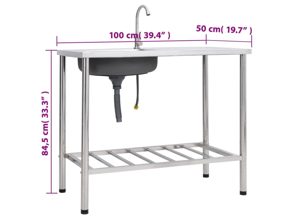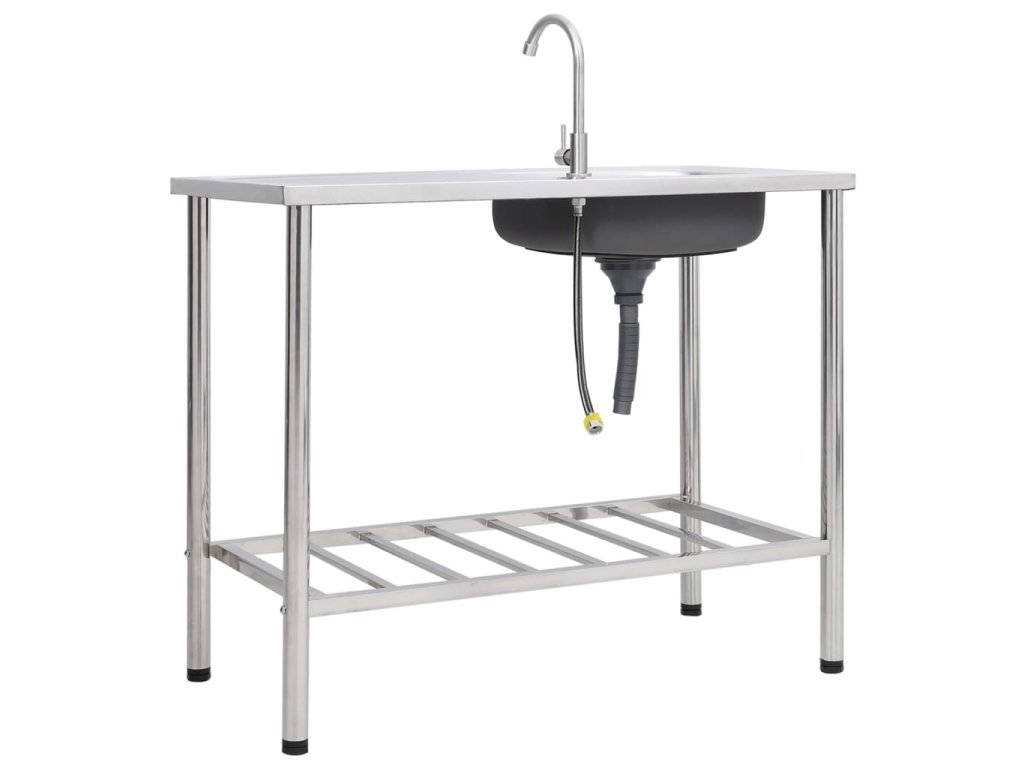 Tento kempingový drez má veľké umývadlo s odkvapkávačom a kohútikom, vďaka čomu je ideálnou voľbou na vonkajšie použitie.