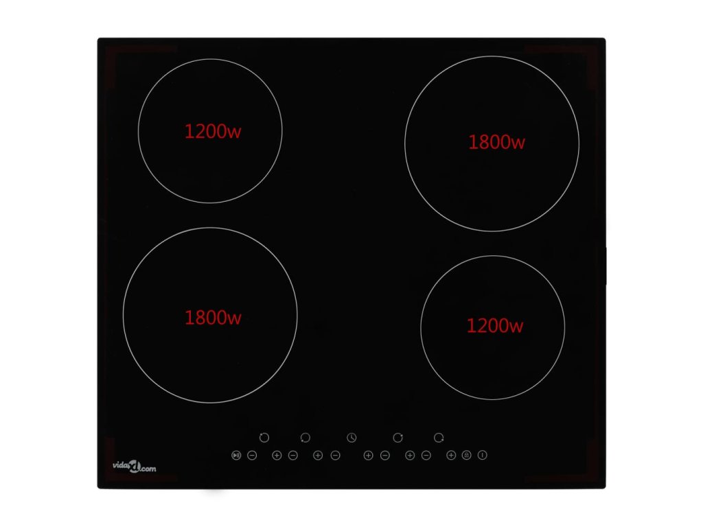 Elektrická varná doska má senzorové dotykové ovládanie a 4 automatické varné dosky s 9 úrovňami varenia. Varná doska je vyrobená z tepelne odolného skla, ktoré je odolné a bezpečné. Má 4 platničky, ktoré môžu byť použité samostatne alebo súčasne. Teplota varnej dosky je monitorovaná vstavaným čidlom, takže sa automaticky vypne, pokiaľ sa príliš zohreje, alebo ju zabudnete vypnúť. Vďaka indikátoru zvyškového tepla vám displej zobrazí varovanie, pretože platnička zostane ešte nejaký čas horúca a bude uvoľňovať zvyškové teplo. Po uplynutí nastaveného času vydá akustický signál, alebo sa po uplynutí nastaveného času vypne (až do 99 minút). Detská poistka zabraňuje tomu, aby malé deti menili nastavenia na ovládači a uzamkne ovládacie prvky pri čistení.