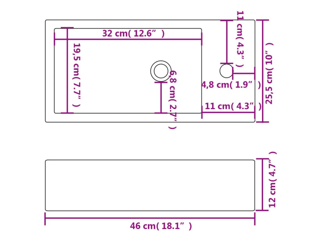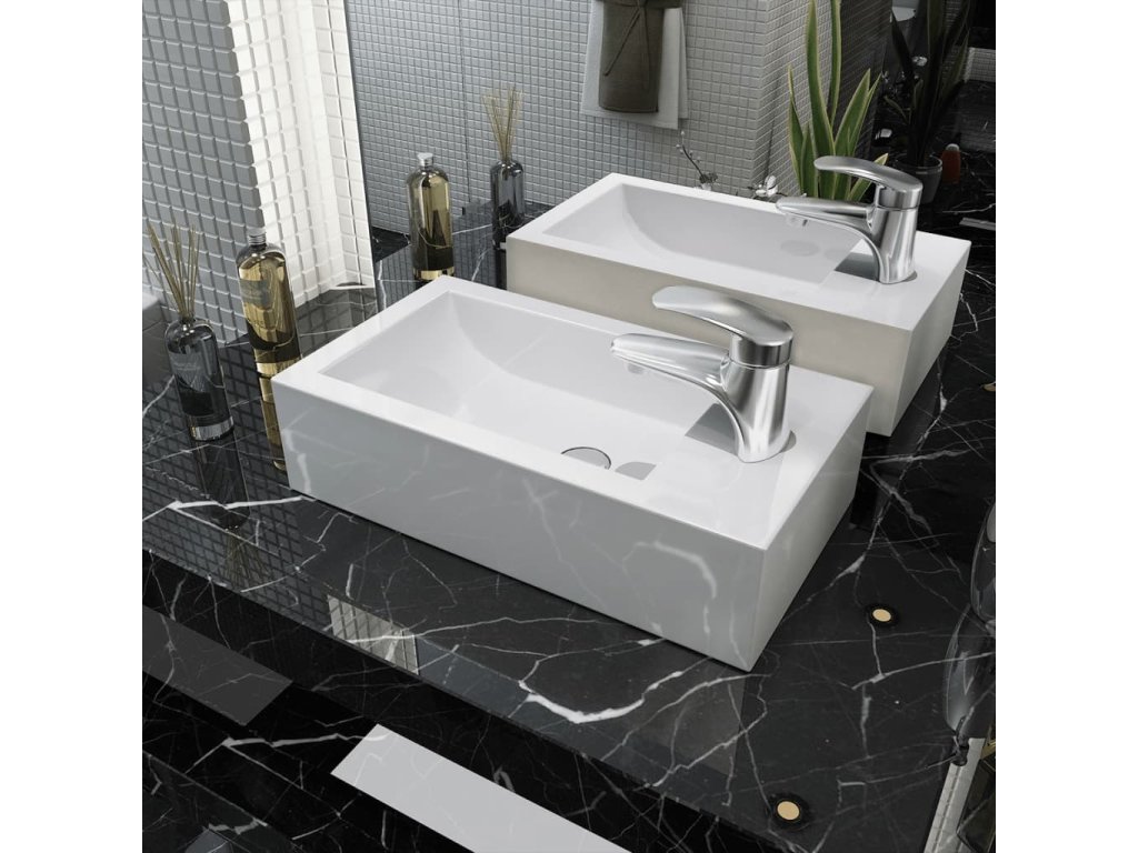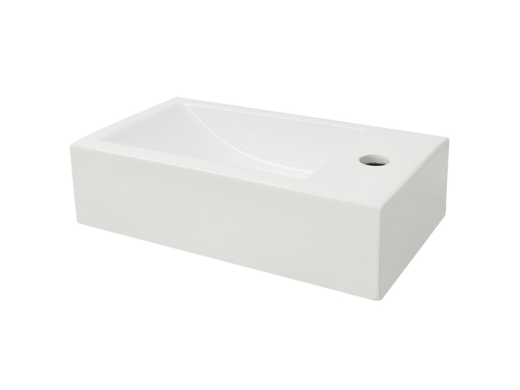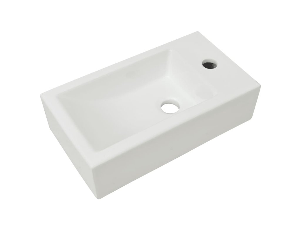 vidaXL Keramické umývadlo s otvorom na batériu, obdĺžnikové, biele, 46x25,5x12 cm