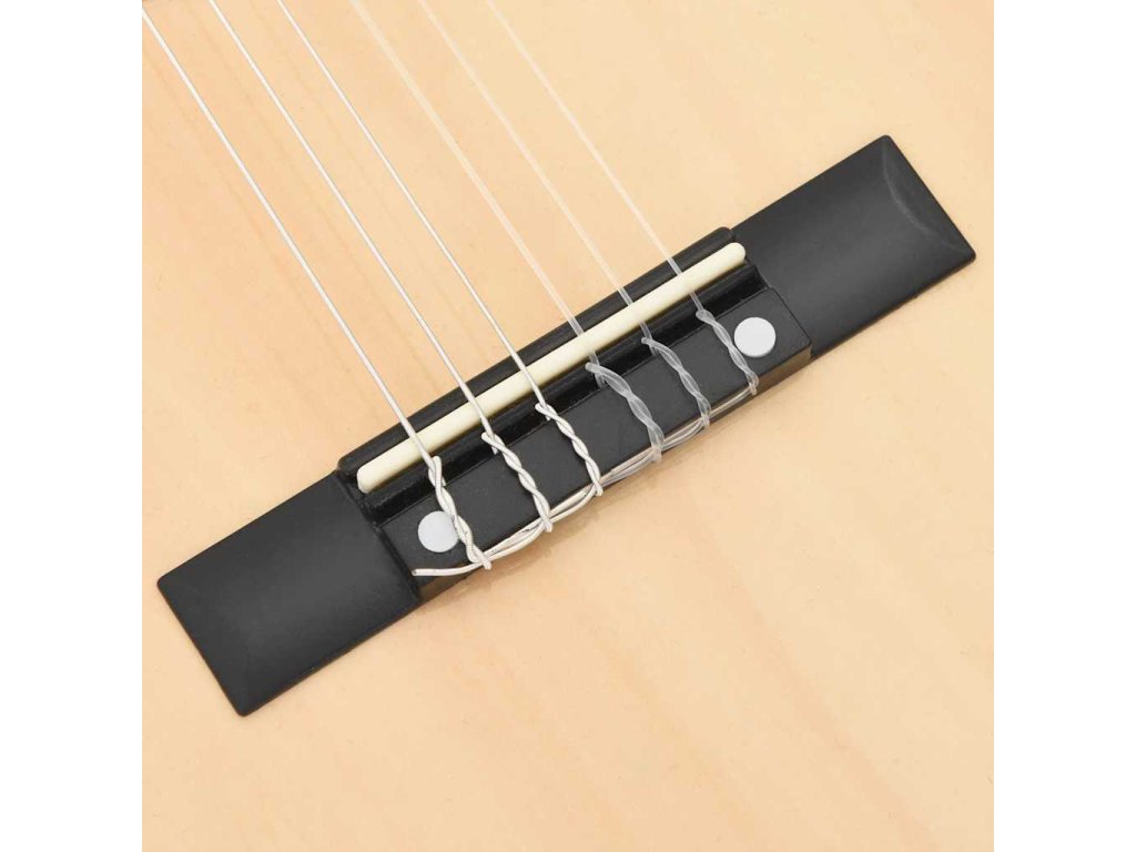 Táto gitara je vyrobená z masívneho lipového dreva s tvrdými plastovými gombíkmi a hmatníkom. Hodnota tejto gitary spočíva vo vynikajúcej kvalite zvuku a krásnom klasickom dizajne. Táto gitara s 52,5 cm hmatníkom má všetko, čo potrebujete, aby ste sa mohli stať gitaristom.