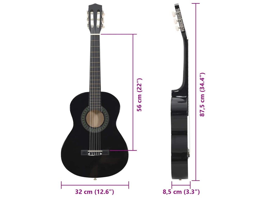 Táto gitara je vyrobená z masívneho lipového dreva s tvrdými plastovými gombíkmi a hmatníkom. Hodnota tejto gitary spočíva vo vynikajúcej kvalite zvuku a krásnom klasickom dizajne. Táto gitara s 52,5 cm hmatníkom má všetko, čo potrebujete, aby ste sa mohli stať gitaristom.