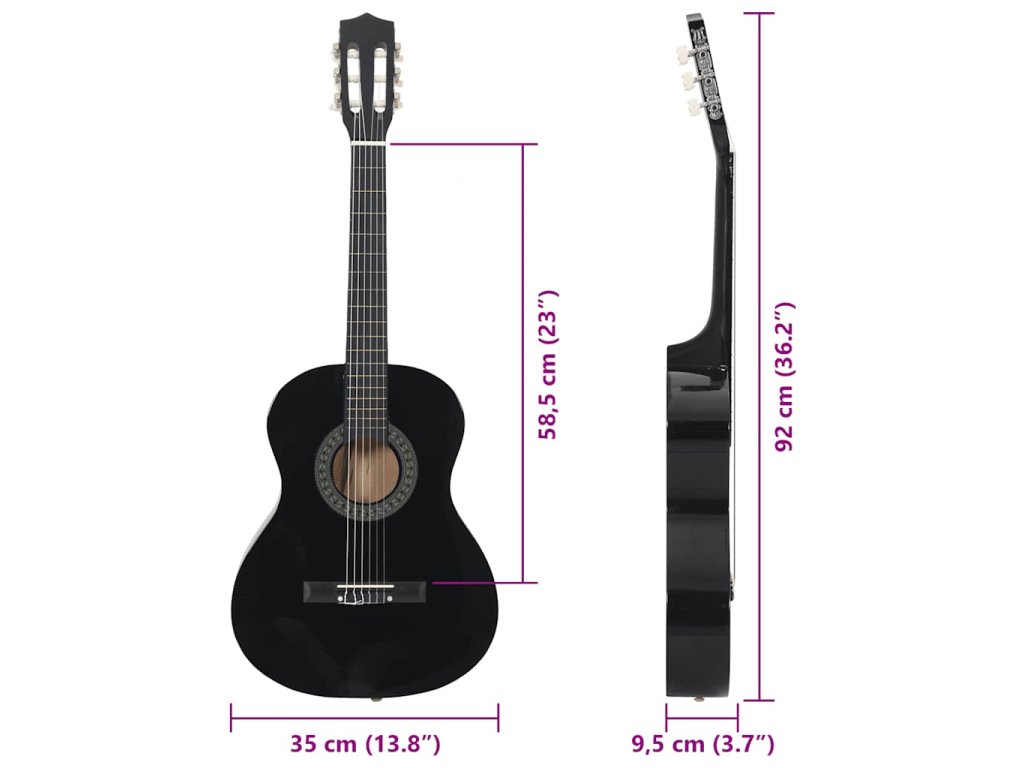 Táto gitara je vyrobená z masívneho lipového dreva s tvrdými plastovými kolíkmi a hmatníkom. Hodnota tejto gitary spočíva vo vynikajúcej kvalite zvuku a krásnom klasickom dizajnu. Táto gitara s 58,5 cm hmatníkom má všetko, čo potrebujete, aby ste sa mohli stať gitaristom.
