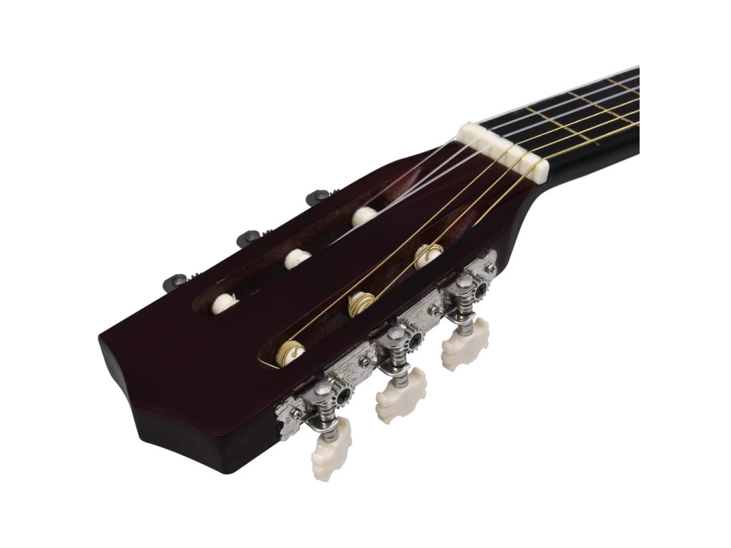 Táto gitara je vyrobená z masívneho lipového dreva s tvrdými plastovými tlačidlami a hmatníkom. Vďaka vynikajúcej kvalite zvuku a krásnemu klasickému dizajnu je veľmi cenná. Ľahká taška je vyrobená z látky, ktorá je odolná voči poveternostným vplyvom a ponúka vynikajúcu ochranu vašej gitary. Gitaru môžete vložiť do tašky s popruhom a vziať si so sebou.