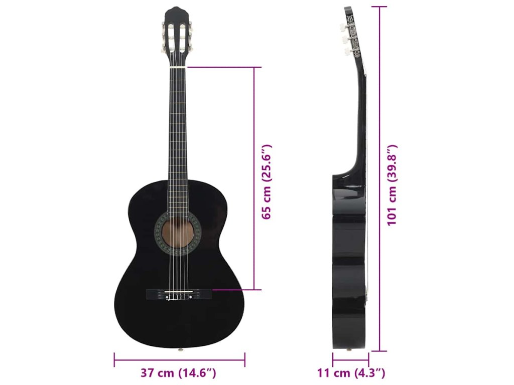 Táto gitara je vyrobená z masívneho lipového dreva s tvrdými plastovými kolíkmi a hmatníkom. Hodnota tejto gitary spočíva vo vynikajúcej kvalite zvuku a krásnom klasickom dizajnu. Táto gitara s 65 cm hmatníkom má všetko, čo potrebujete, aby ste sa mohli stať gitaristom.