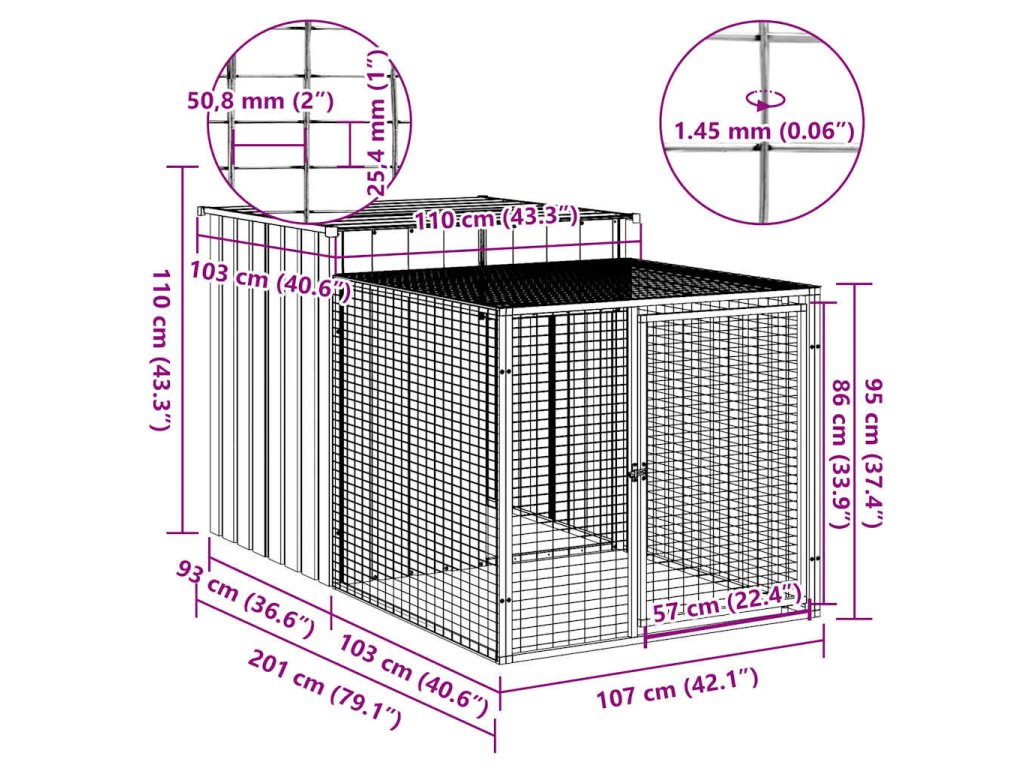 - Odolná konštrukcia: Vďaka robustnej a odolnej konštrukcii z pozinkovanej ocele je výbeh pre kurníky odolný a vyrobený tak, aby vydržal.