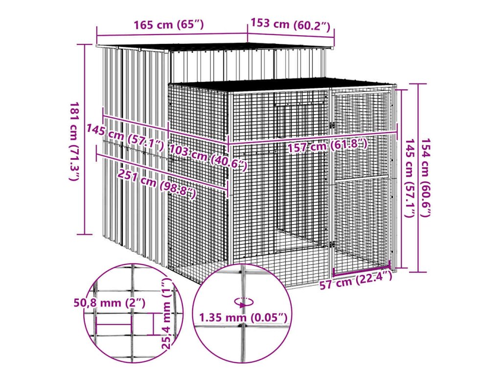 - Odolná konštrukcia: Vďaka robustnej a odolnej konštrukcii z pozinkovanej ocele je výbeh pre kurníky odolný a vyrobený tak, aby vydržal.