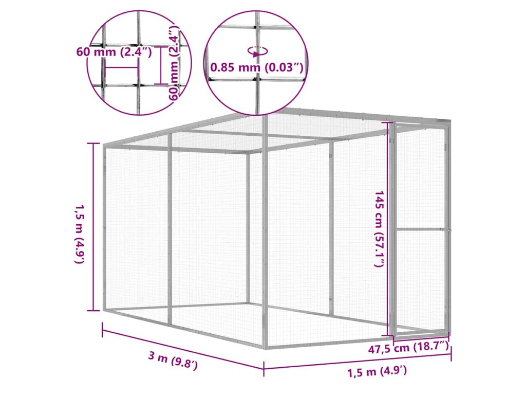 Vonkajšia klietka je vyrobená z pozinkovanej ocele, vďaka čomu je mimoriadne robustná. Je vybavená uzamykateľnými dvierkami so závesným čapom. Drôtené pletivo sa postará o to, aby z klietky mačka neušla a aby nedošlo k nechceným úrazom a tiež o to, aby do klietky prúdilo dostatočné množstvo vzduchu.