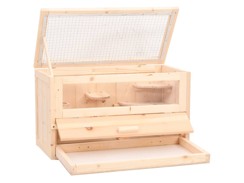 Táto drevená klietka pre škrečka s mnohými doplnkami poskytuje malým domácim miláčikom ideálne miesto na behanie, skákanie alebo lezenie. Je vhodný aj pre mláďatá pieskomilov, myší, morčiat a iných zvierat podobnej veľkosti.