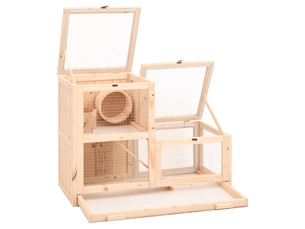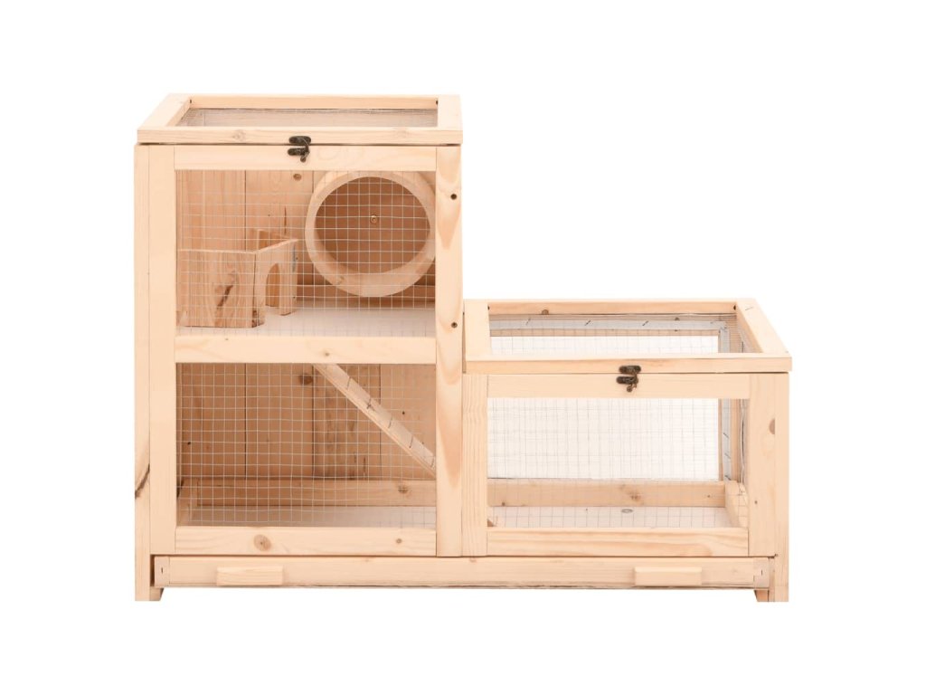 Táto drevená klietka pre škrečka s mnohými doplnkami poskytuje malým domácim miláčikom ideálne miesto na behanie, skákanie alebo lezenie. Je vhodný aj pre mláďatá pieskomilov, myší, morčiat a iných zvierat podobnej veľkosti.